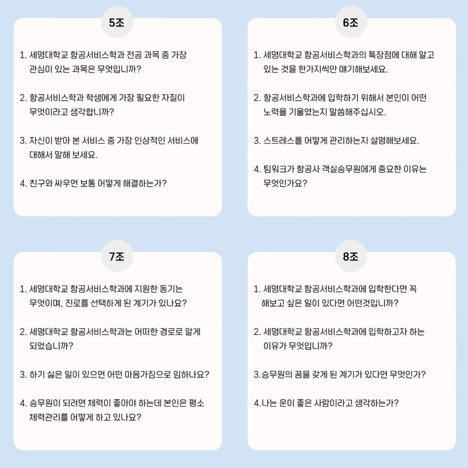 조별로 총 4문제가 공개되었으며 답변은 30초 이내로 해주시면 됩니다☺️