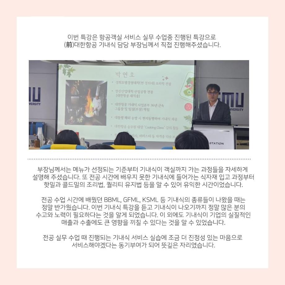 이번 특강에서는 (前)대한항공 기내식 담당 부장님께서 직접 진행해주셨습니다🙌🏻