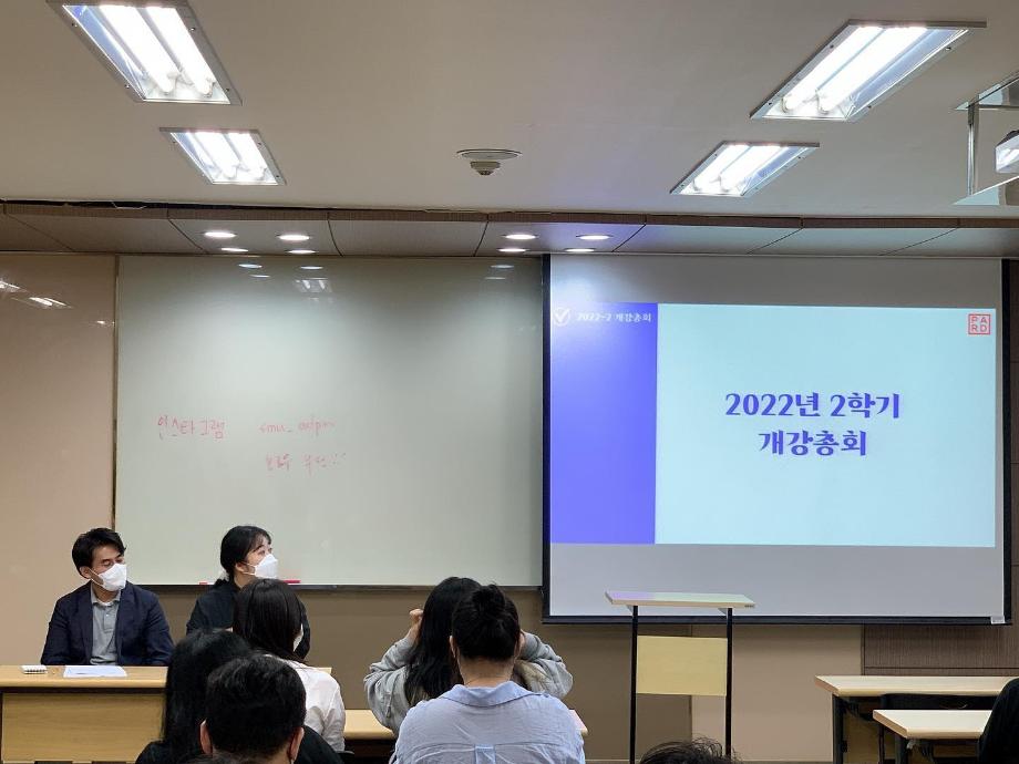 본문 시작 홈으로 매력적인 학과소개 매력적인 학과소개 흥미로운 교육과정 특별CC프로그램 We can 취업 따뜻한 커뮤니티 홈페이지가이드 지금 우리 광홍은 학과개요 학과연혁 교수소개 Wilco로 보는광고홍보학과 지금 우리 광홍은 지금 우리 광홍은 페이스북 트위터 프린트 2022년도 2학기 개강 총회 광고홍보학과 2716 2022-09-16 2022학년도 2학기 개강 총회를 개최했습니다. 2학기 학과 행사 일정 소개와 총회에 오신 학생을 위한 간단한 상품권 추첨 이벤트도 개최했습니다. _일시 : 2022년 9월 6일(화), 18:30 _장소 : 사회과학관 405호 _참석 : 교수님, 학생 1~4학년 목록 이전부산국제광고제 참관 & 학과 홍보부스 운영 다음 2022년도 광고홍보 취업 특강 시리즈 1탄