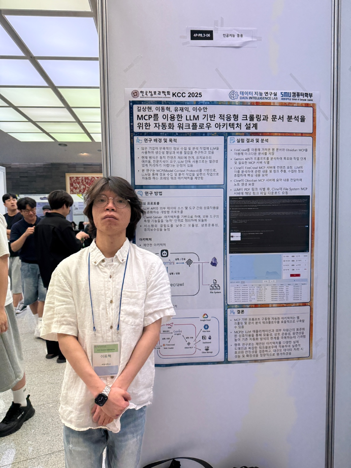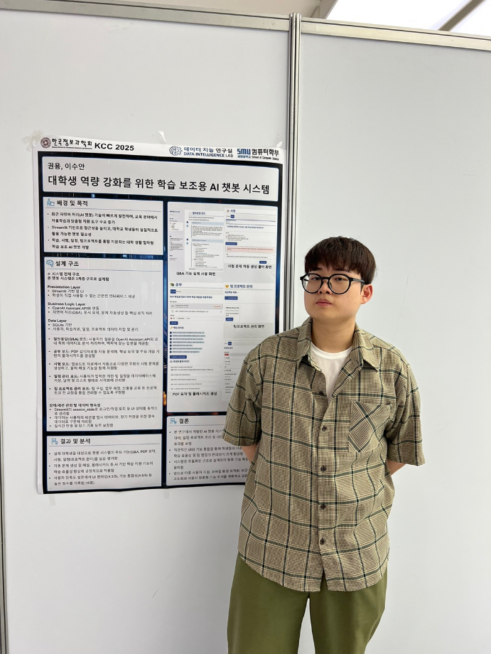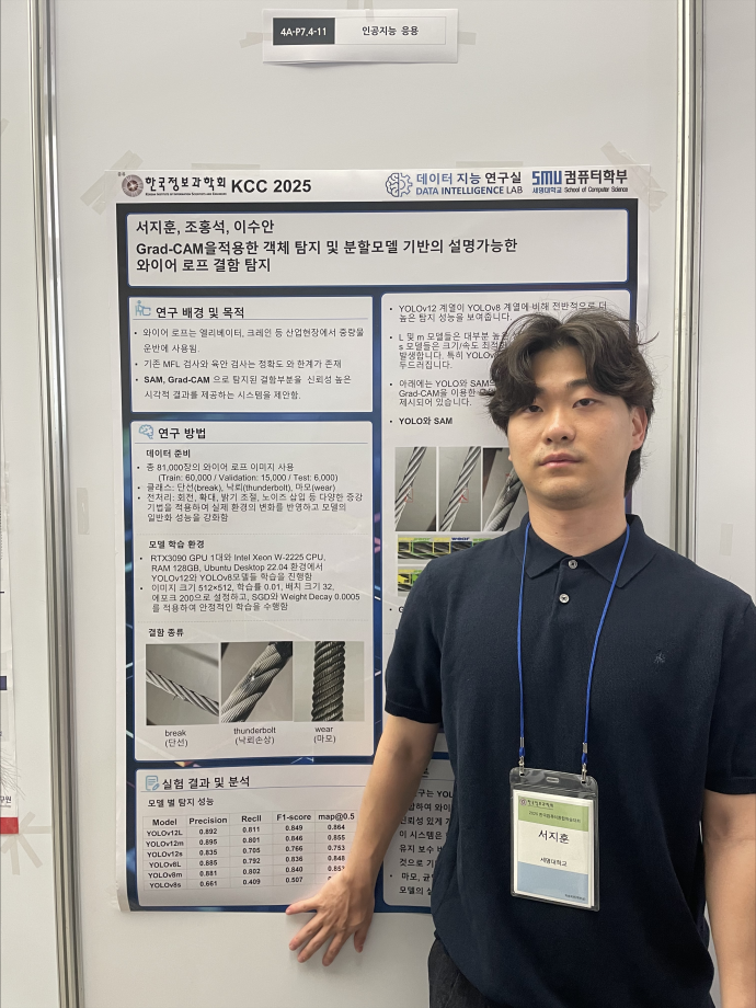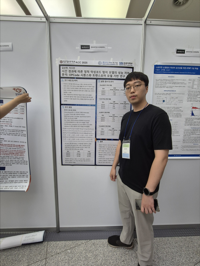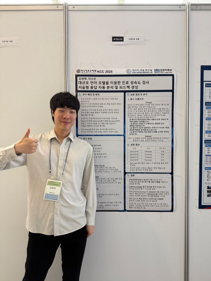 본문 시작 홈으로 학부활동 학부소개 학부활동 교육과정 커뮤니티 학부생활 입학안내 홈페이지가이드 학부행사 학부행사 학생회 활동 전공 동아리 학부갤러리 학부행사 페이스북 트위터 프린트 2025 한국컴퓨터종합학술대회 논문 발표 참가 - 1 컴퓨터학부 777 2025-07-09 국내 컴퓨터분야 최대 학술대회인 2025 한국컴퓨터종합학술대회 논문 발표에 참여한 고상근, 권용, 길상현, 김남현, 김동후, 김병학, 김재성, 박주성, 백상렬, 서지훈, 우강석, 이동혁 학생입니다. 모두 고생하셨습니다! 목록 이전세명대학교 컴퓨터학부 2025-1학기 단체봉사 다음 2025 한국컴퓨터종합학술대회 논문 발표 참가 - 2 만족도조사 만족도 조사 이 페이지에서 제공하는 정보에 대하여 만족하시나요? 매우만족 만족 보통 불만족 매우불만족