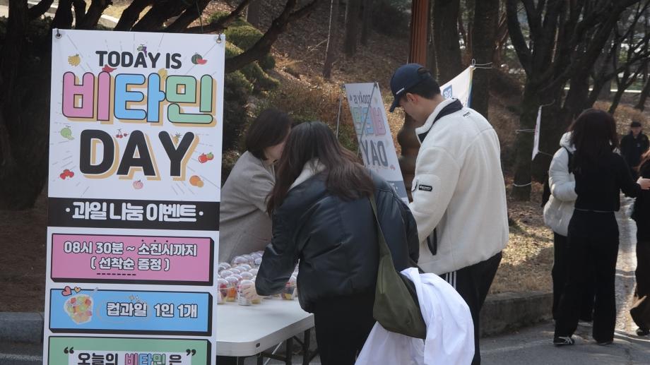 본문 시작 홈으로 학부활동 학부소개 학부활동 교육과정 커뮤니티 학부생활 입학안내 홈페이지가이드 학부행사 학부행사 학생회 활동 전공 동아리 학부갤러리 학부행사 페이스북 트위터 프린트 🍎과일 나눔 이벤트 비타민 DAY🍋🟩 컴퓨터학부 44 2026-03-24 2026년 3월 24일 화요일 🍊🍎 재학생 여러분의 건강 증진과 학교 생활 만족도를 높이고, 든든하게 채우기 위해 특별한 시간을 준비했습니다! , 과일 나눔 이벤트 **“비타민 DAY”**를 진행했어요 ✨ 신선한 과일과 함께 잠시나마 바쁜 일상 속에서 여유를 느끼고, 웃음과 활력을 나누는 시간이 되었길 바랍니다 😊 목록 이전대한전자공학회 2025 추계학술대회 참여 만족도조사 만족도 조사 이 페이지에서 제공하는 정보에 대하여 만족하시나요? 매우만족 만족 보통 불만족 매우불만족