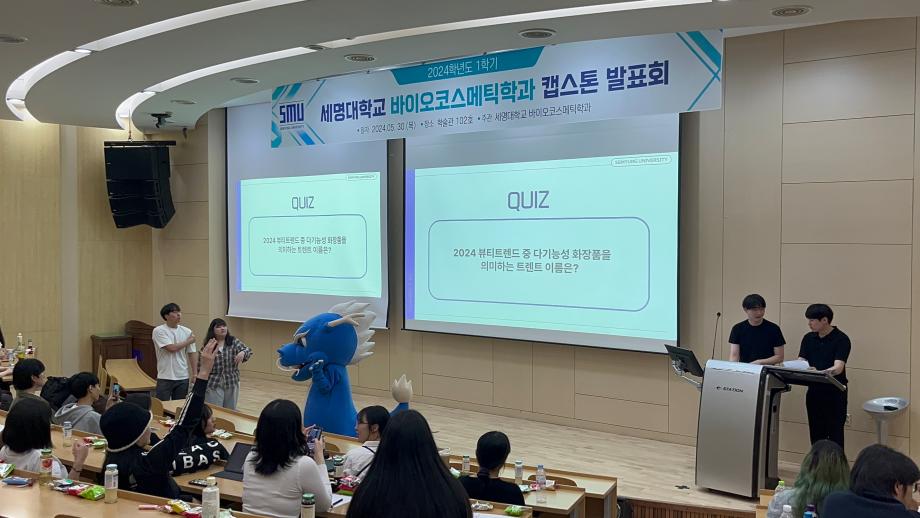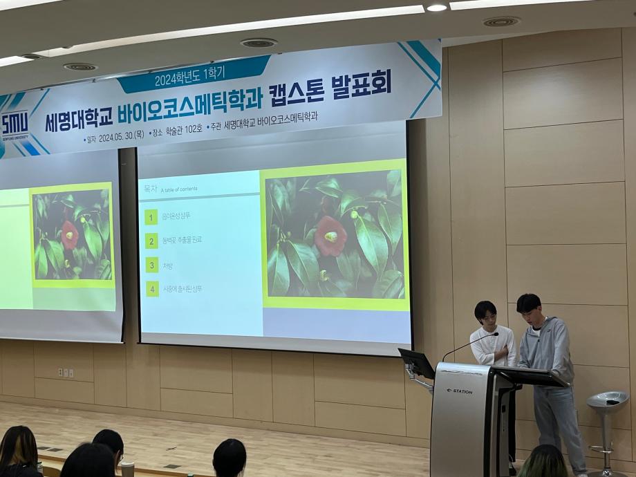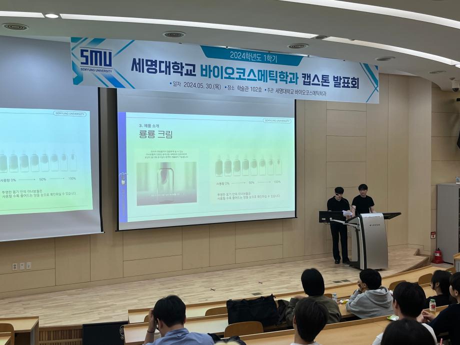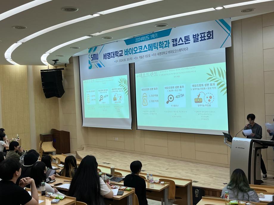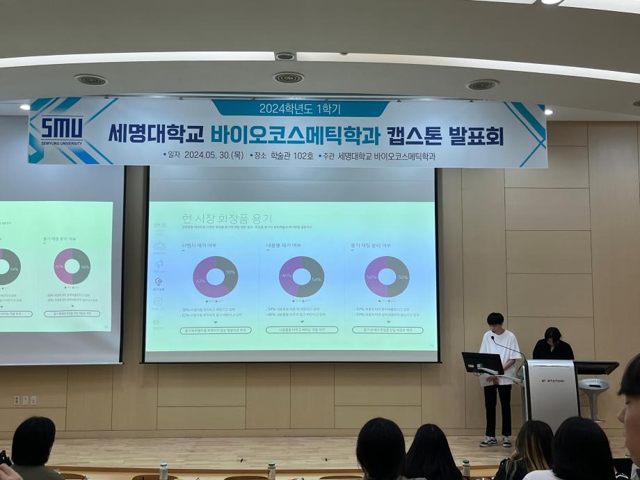 본문 시작 홈으로 학과소개 학과소개 학과과정 대학원 커뮤니티 연구동아리 홈페이지가이드 학과행사 학과개요 학과장인사말 학과연혁 졸업 후 진로 교수소개 학과행사 학과행사 페이스북 트위터 프린트 2024학년도 1학기 바이오코스메틱학과 캡스톤발표회 바이오코스메틱학과 2362 2024-05-31 2024년 05월 30일 학술관 102호에서 바이오코스메틱학과 캡스톤 발표회를 진행하였습니다. 각자 준비한 발표자료를 가지고 학우들과 교류하며 발표,질의,응답등을 진행하였으며 학우들과 전공에 대한 지식을 나눌 수 있는 좋은 기회였습니다. 목록 이전2024학년도 바이오코스메틱학과 스승의날 행사 다음 2025학년도 학과 M.T 만족도조사 만족도 조사 이 페이지에서 제공하는 정보에 대하여 만족하시나요? 매우만족 만족 보통 불만족 매우불만족