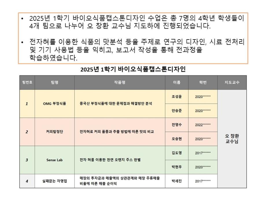 본문 시작 홈으로 학부소개 학부소개 진로·취업 교육과정 커뮤니티 대학원 입학상담 홈페이지가이드 갤러리 학부비전 학부장 인사말 학부연혁 학부장점 교수소개 교육시설 MOU 체결 갤러리 갤러리 페이스북 트위터 프린트 2025년 1학기 바이오캡스톤디자인 바이오식품영양학부 615 2025-06-21 목록 이전HACCP교육 이전20250507 제천고 진로아카데미전문가특강(오창환교수님) 만족도조사 만족도 조사 이 페이지에서 제공하는 정보에 대하여 만족하시나요? 매우만족 만족 보통 불만족 매우불만족
