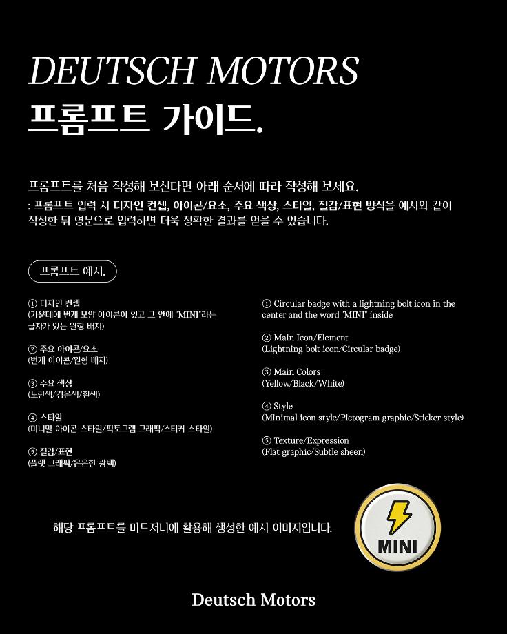 [공모전] Deutsch Motors MINI와 함께하는 AI로 만드는 MINI 전기차 배지 디자인 공모전
