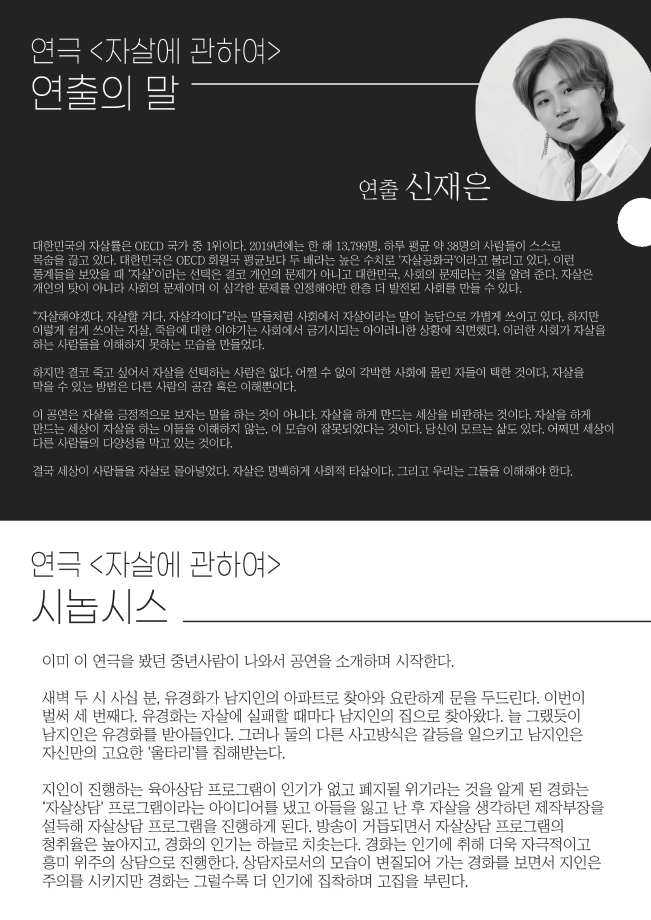 본문 시작 홈으로 학과과정 학과소개 입학정보 교수소개 학과과정 커뮤니티 공연예매 안내 홈페이지가이드 비교과프로그램 교육과정 전공교육 체계도 비교과프로그램 MOU 체결 하계, 동계 프로젝트 하계, 동계 프로젝트 연극놀이 지도사 양성 교육 현장실습 프로그램 액팅플러스 하계, 동계 프로젝트 페이스북 트위터 프린트 2021학년도 동계 프로젝트 ‘자살에 관하여’ 연기예술학과 2473 2021-03-26 목록 다음 2021학년도 동계 프로젝트 ‘넥스트 투 노멀’ 다음 2021학년도 동계 프로젝트 ‘오아시스 세탁소 습격사건’ 만족도조사 만족도 조사 이 페이지에서 제공하는 정보에 대하여 만족하시나요? 매우만족 만족 보통 불만족 매우불만족