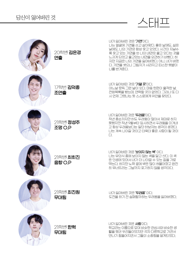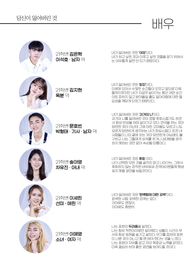 본문 시작 홈으로 학과과정 학과소개 입학정보 교수소개 학과과정 커뮤니티 공연예매 안내 홈페이지가이드 비교과프로그램 교육과정 전공교육 체계도 비교과프로그램 MOU 체결 하계, 동계 프로젝트 하계, 동계 프로젝트 연극놀이 지도사 양성 교육 현장실습 프로그램 액팅플러스 하계, 동계 프로젝트 페이스북 트위터 프린트 2021학년도 하계 프로젝트 '당신이 잃어버린 것' 연기예술학과 2519 2021-08-25 목록 이전2021학년도 하계 프로젝트 ' 쇼팔로비치 유랑극단' 이전2021 극단 포즈 창단 공연 '어정어정 걸어오신다' 만족도조사 만족도 조사 이 페이지에서 제공하는 정보에 대하여 만족하시나요? 매우만족 만족 보통 불만족 매우불만족