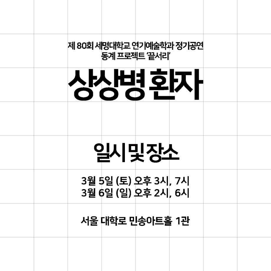 • 방학 중 학생들의 손으로 직접 공연을 기획하고 연습하여 공연을 제작한다. 본 공연은 서울 민송아트홀 및 본교 태양아트홀에서 공연되며 다양한 형식의 실험과 도전으로 학생들의 자기효능감을 향상시킨다.