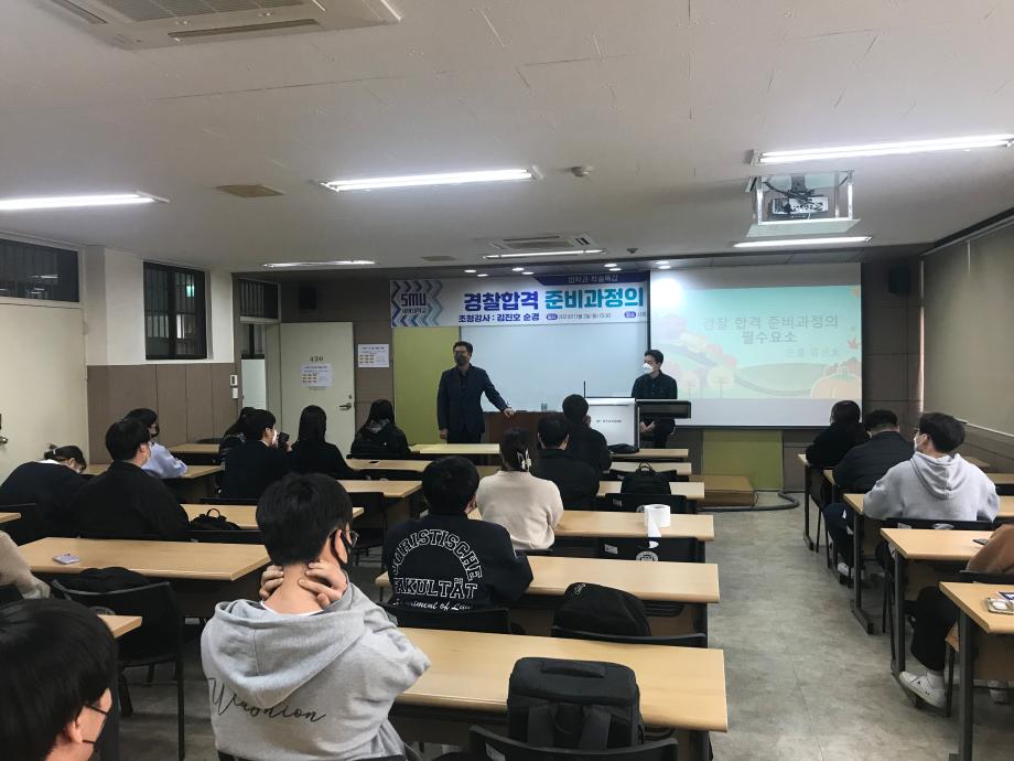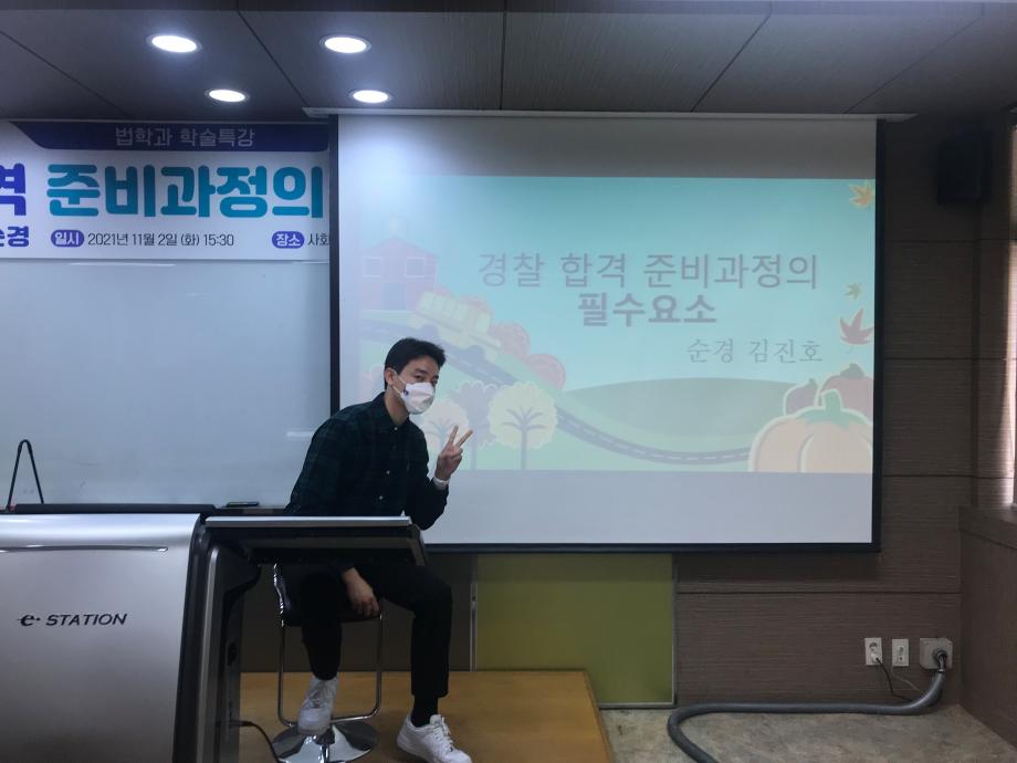본문 시작 홈으로 학과과정 학과안내 교수소개 학과과정 커뮤니티 홈페이지가이드 비교과프로그램 교육과정 전공교육 체계도 대학원 법학과 비교과프로그램 학사일정 공공법무 지원프로그램 공공법무 지원프로그램 기업법무 지원프로그램 공공법무 지원프로그램 페이스북 트위터 프린트 2021.11.02 경찰 공무원 특강 법학과 3278 2021-11-02 2021년 11월 2일 충주경찰서 사이버수사대 소속 김진호 선배님을 모시고 ' 경찰합격 준비과정의 필수요소' 이라는 주제로 특강을 진행하였습니다. 목록 다음 2021. 11. 03 변호사 특강 담당부서 : 법학과 담당자 : - 연락처 : 043-649-1764 최종수정일 : 2024-10-26 만족도조사 만족도 조사 이 페이지에서 제공하는 정보에 대하여 만족하시나요? 매우만족 만족 보통 불만족 매우불만족