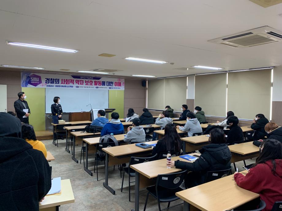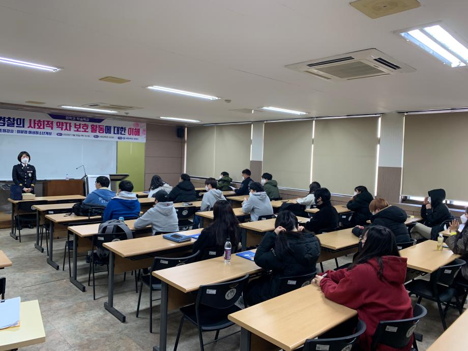 본문 시작 홈으로 학과과정 학과안내 교수소개 학과과정 커뮤니티 홈페이지가이드 비교과프로그램 교육과정 전공교육 체계도 대학원 법학과 비교과프로그램 학사일정 공공법무 지원프로그램 공공법무 지원프로그램 기업법무 지원프로그램 공공법무 지원프로그램 페이스북 트위터 프린트 2020.11.19 경찰 공무원 특강 법학과 3344 2020-11-19 2020년 11월 19일 이윤정 경감님을 모시고 ' 경찰의 사회적 약자 보호 활동에 대한 이해' 이라는 주제로 특강을 진행하였습니다. 목록 다음 2020.11.26 일반공무원 특강 다음 2020.11.19 공인노무사 특강 담당부서 : 법학과 담당자 : - 연락처 : 043-649-1764 최종수정일 : 2024-10-26 만족도조사 만족도 조사 이 페이지에서 제공하는 정보에 대하여 만족하시나요? 매우만족 만족 보통 불만족 매우불만족