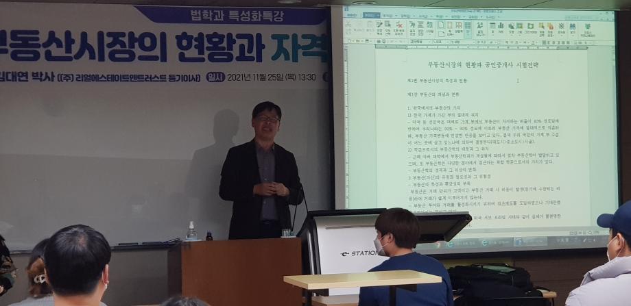 본문 시작 홈으로 학과과정 학과안내 교수소개 학과과정 커뮤니티 홈페이지가이드 비교과프로그램 교육과정 전공교육 체계도 대학원 법학과 비교과프로그램 학사일정 기업법무 지원프로그램 공공법무 지원프로그램 기업법무 지원프로그램 기업법무 지원프로그램 페이스북 트위터 프린트 2021. 11. 24 공인중개사 특강 법학과 2855 2021-11-24 2021년 11월 24일 (주)리얼이스테이트앤트러스트에서 등기이사을 맡고 계시는 김대연 박사님을 모시고 ' 부동산시장의 현황과 자격증 합격 전략' 이라는 주제로 특강을 진행하였습니다. ※본 특강은 코로나19 방역 수칙을 준수하여 진행하였습니다.※ 목록 다음 2021 11. 25. 공인중개사 특강 다음 2021. 11. 24 법무사 특강 담당부서 : 법학과 담당자 : - 연락처 : 043-649-1764 최종수정일 : 2024-10-26 만족도조사 만족도 조사 이 페이지에서 제공하는 정보에 대하여 만족하시나요? 매우만족 만족 보통 불만족 매우불만족