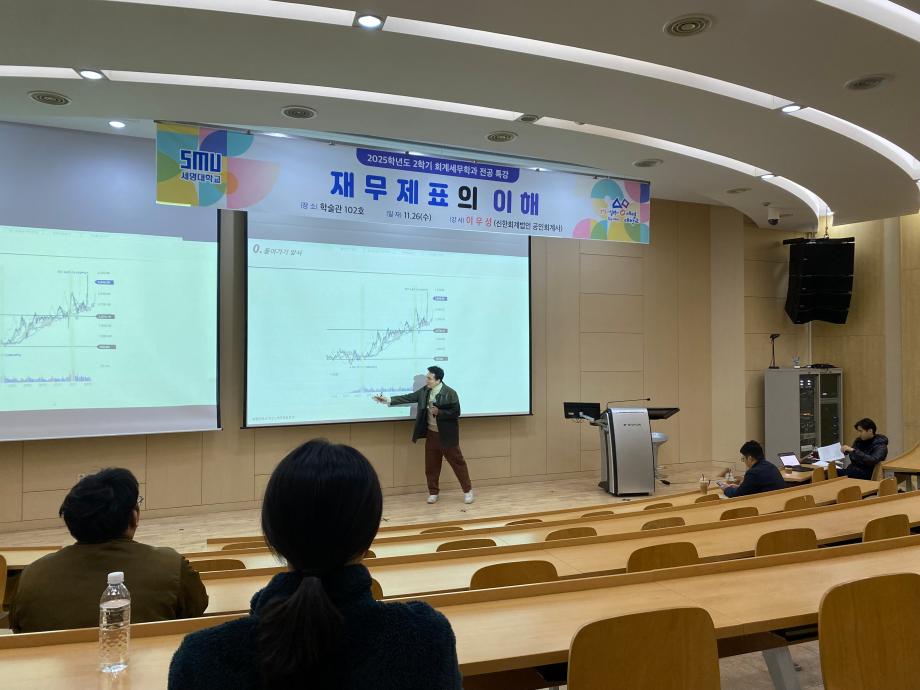 본문 시작 홈으로 교육과정 학과소개 취업정보 교육과정 학과소식 홈페이지가이드 비교과프로그램 교육과정 전공교육 체계도 비교과프로그램 전산회계 특강 전산회계 특강 전산세무 특강 회계 및 세무 공무원 특강 회계 및 세무 분야 진로 특강 전산회계 특강 페이스북 트위터 프린트 2025학년도 2학기 회계세무금융학과 전산회계 특강 회계세무금융학과 92 2026-02-03 2025학년도 2학기 회계사를 초청하여 재무재표에 대한 이해를 주제로 특강을 진행하였습니다. 목록 이전2025학년도 2학기 회계세무금융학과 전산회계 특강 만족도조사 만족도 조사 이 페이지에서 제공하는 정보에 대하여 만족하시나요? 매우만족 만족 보통 불만족 매우불만족