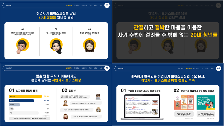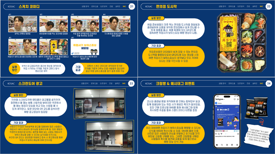 본문 시작 홈으로 흥미로운 교육과정 매력적인 학과소개 흥미로운 교육과정 특별CC프로그램 We can 취업 따뜻한 커뮤니티 홈페이지가이드 작품 갤러리 교육일정 교육과정 전공교육 체계도 졸업후진로 작품 갤러리 작품 갤러리 페이스북 트위터 프린트 [2024KOSAC]대한민국대학생광고대회 출품작 광고홍보학과 4179 2024-09-11 2024년도 대한민국 대학생 광고대회 출품작 주제 : 보이스 피싱 예방 캠페인 제안서 세명대 광고홍보학과는 '기획맛집'을 지향하고, 이를 인정받고 있습니다 : ) 목록 이전[2024KOSAC]대한민국대학생광고대회 출품작 다음 [평판관리]코레일 평판관리커뮤니케이션 기획서
