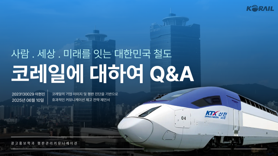 본문 시작 홈으로 흥미로운 교육과정 매력적인 학과소개 흥미로운 교육과정 특별CC프로그램 We can 취업 따뜻한 커뮤니티 홈페이지가이드 작품 갤러리 교육일정 교육과정 전공교육 체계도 졸업후진로 작품 갤러리 작품 갤러리 페이스북 트위터 프린트 [평판관리]코레일 평판관리커뮤니케이션 기획서 광고홍보학과 1799 2025-06-25 2025년도 1학기 평판관리커뮤니케이션 이현진_코레일 평판관리 목록 이전[2024KOSAC]대한민국대학생광고대회 출품작 다음 [2025KOSAC]대한민국대학생광고대회