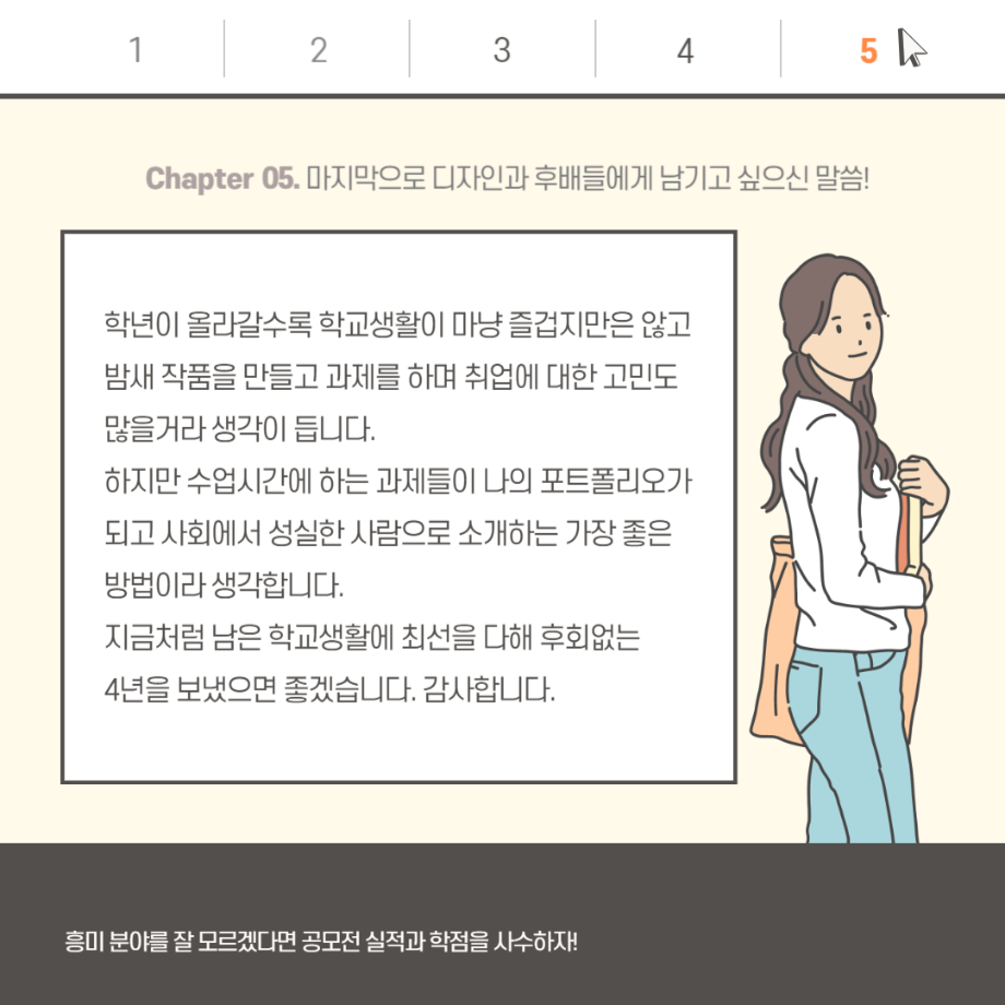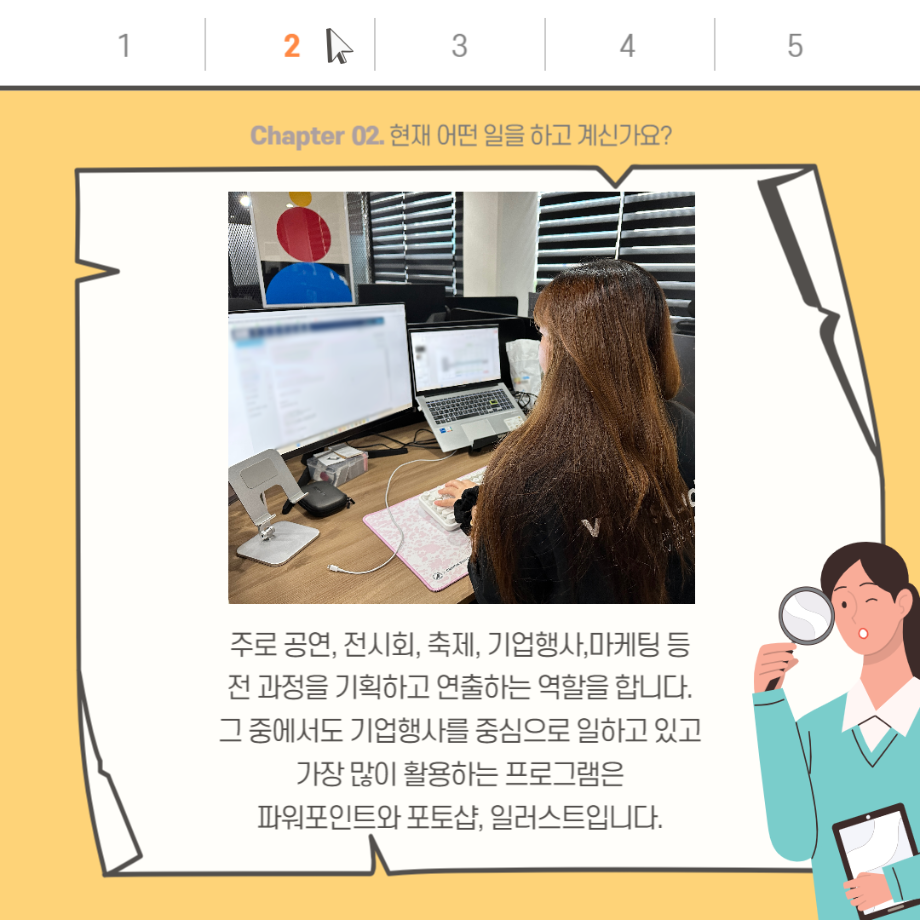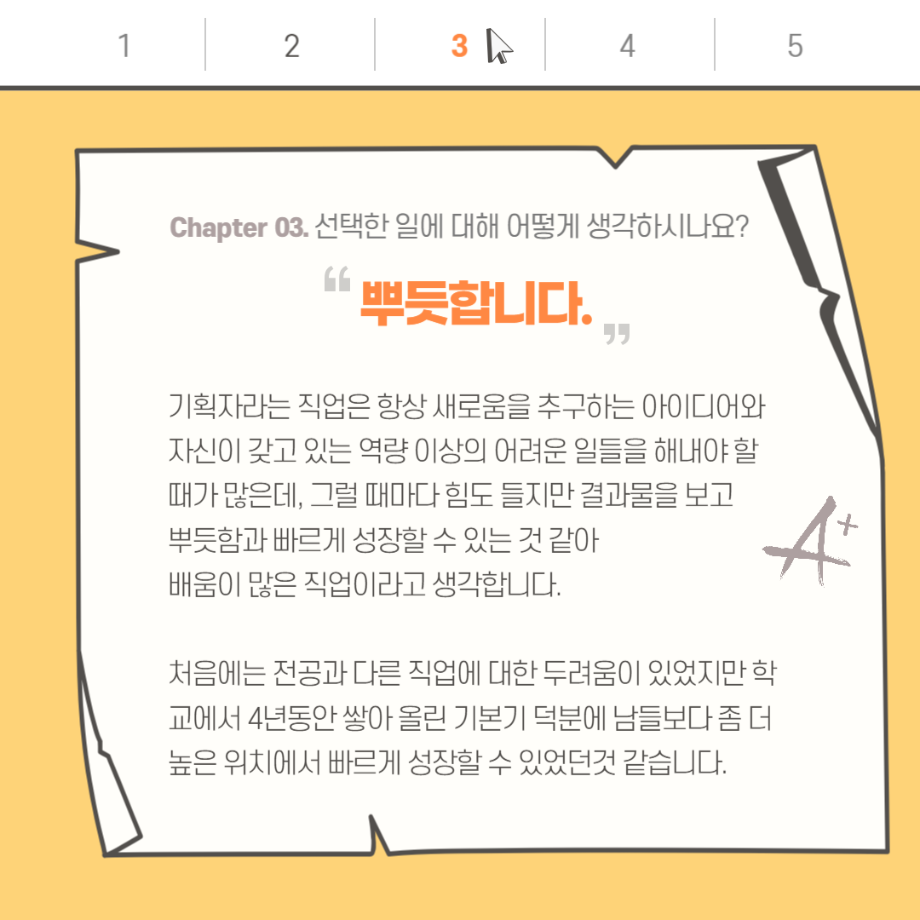 본문 시작 홈으로 입학/취업 학과소개 학과과정 시영소식 입학/취업 AI 학과자랑 SNS소통 홈페이지가이드 취업지금 입학여기 취업지금 전공소개 취업지금 페이스북 트위터 프린트 행사대행사 기획자 - 17학번 김슬기 졸업생 시각영상디자인학과 2908 2023-08-11 목록 이전게임 레벨 디자이너 - 15학번 전상필 졸업생 다음 마케터 - 08학번 박원곤 졸업생 담당부서 : 시각영상디자인학과 담당자 : - 연락처 : 043-649-1726 최종수정일 : 2024-10-26 만족도조사 만족도 조사 이 페이지에서 제공하는 정보에 대하여 만족하시나요? 매우만족 만족 보통 불만족 매우불만족