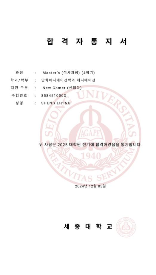 성*영 - 세종대 대학원 만화애니메이션학과 진학 (서울)