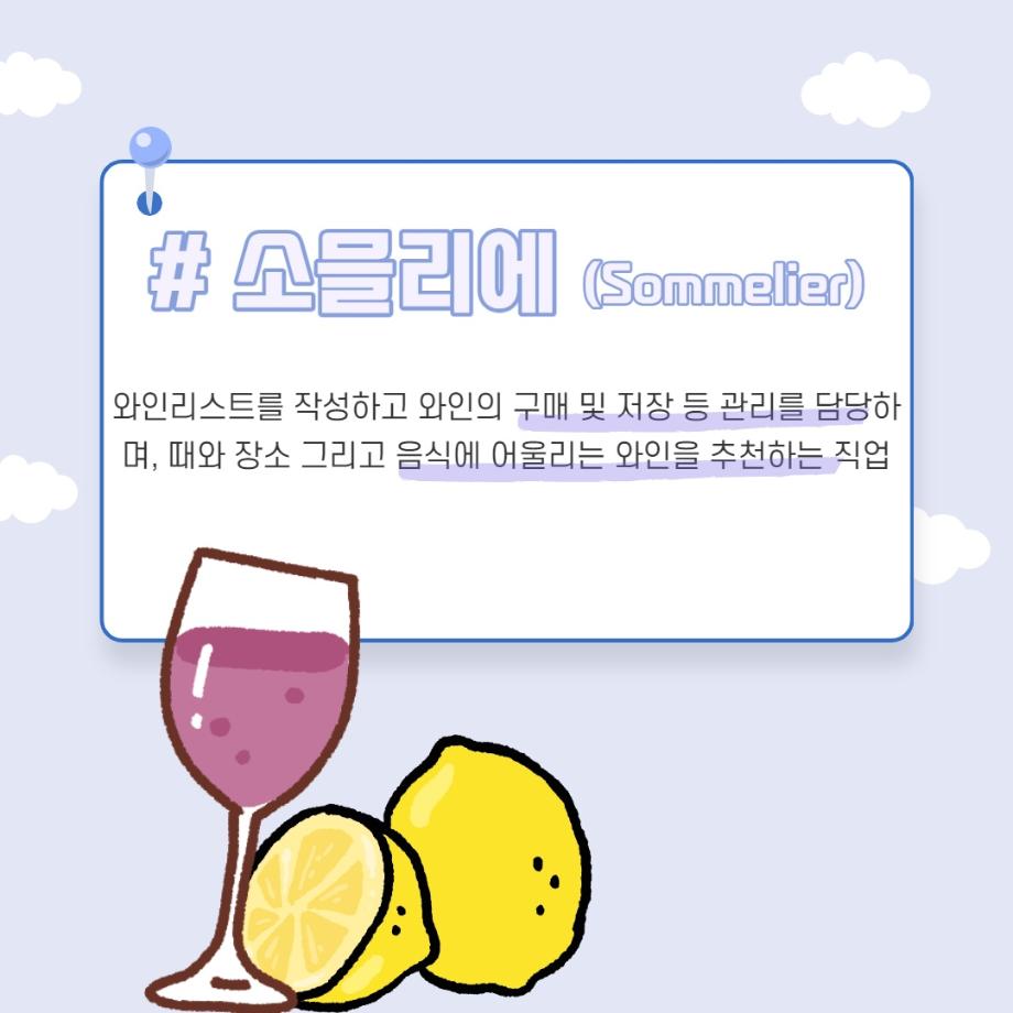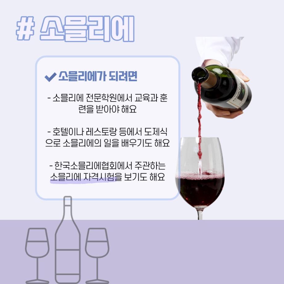 본문 시작 홈으로 머글 한줌단 학과안내 교수소개 교육과정 커뮤니티 머글 한줌단 홈페이지가이드 진로? 무물!! 어쩔 TV 저쩔 TV 진로? 무물!! TM Youtube TM Instagram TM Blog TM Facebook 진로? 무물!! 페이스북 트위터 프린트 소믈리에(Sommelier) 관광경영학과 3033 2022-05-17 목록 이전바리스타(Barista) 다음 외식업체 매니저 (Restaurant Manager) 만족도조사 만족도 조사 이 페이지에서 제공하는 정보에 대하여 만족하시나요? 매우만족 만족 보통 불만족 매우불만족