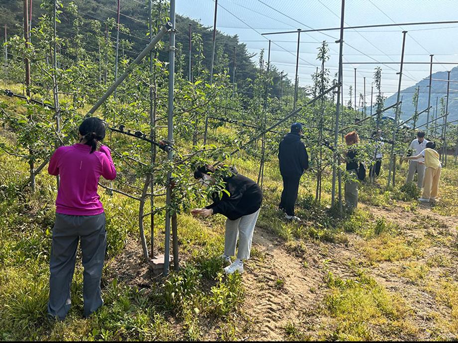 본문 시작 홈으로 포토갤러리 학생위원회 개요 학생위원회 소개 공지사항 활동결과 홈페이지가이드 포토갤러리 페이스북 트위터 프린트 [벗어나는 위원회] 농촌봉사활동 학생처 2720 2023-06-01 세명대학교 재미있는 경험을 위한 학생위원회 중 벗어나는 위원회가 5월 13일(토)에 제천시 봉양읍 명암리 일대에서 농촌봉사활동을 시행하였다. RCY커뮤니티 소속 학생들과 함께 사과 꽃따기 봉사활동을 진행하였으며, 총 20여명의 학생들이 참여하였다. 벗어나는 위원회는 농촌봉사활동 뿐만 아니라 다양한 탐험(여행) 활동을 계획하고 있다. 목록 이전[통하는 위원회]체전통통 다음 [알려주는 위원회] 너의MBTI를 알려줘 담당부서 : 장학복지팀 담당자 : - 연락처 : 043-649-1142 최종수정일 : 2024-10-26 만족도조사 만족도 조사 이 페이지에서 제공하는 정보에 대하여 만족하시나요? 매우만족 만족 보통 불만족 매우불만족