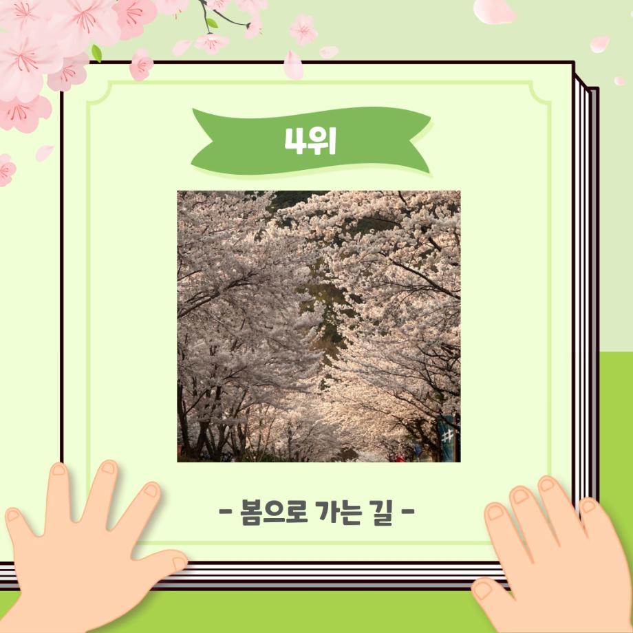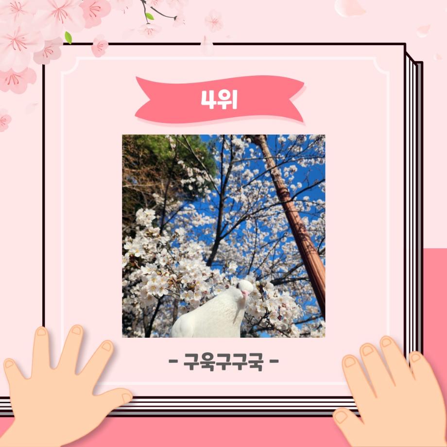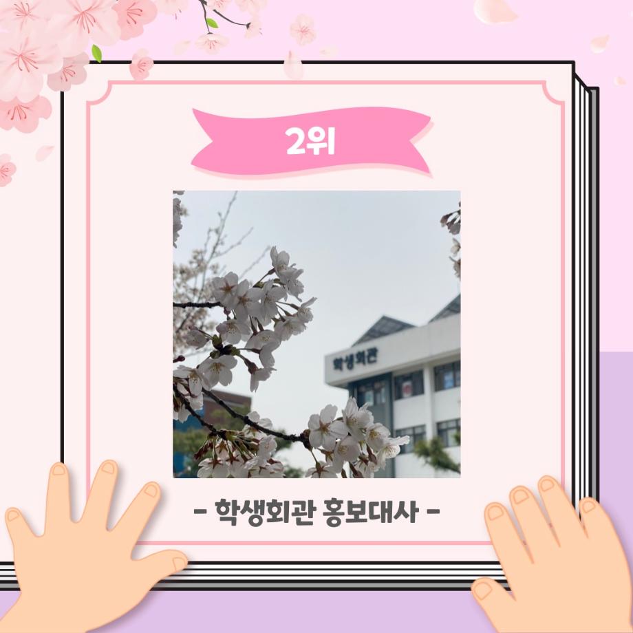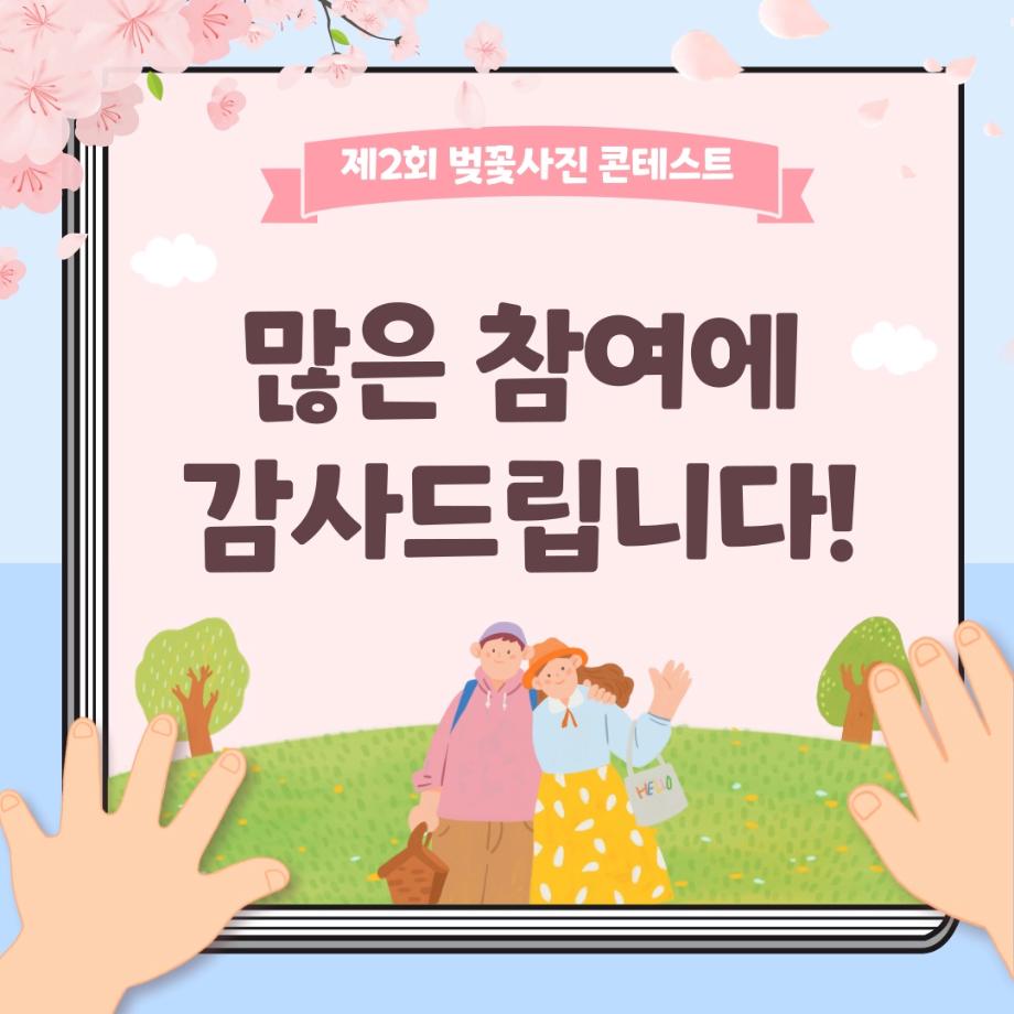본문 시작 홈으로 포토갤러리 학생위원회 개요 학생위원회 소개 공지사항 활동결과 홈페이지가이드 포토갤러리 페이스북 트위터 프린트 [꽃피는 위원회] 벚꽃사진 콘테스트 결과 학생처 2105 2024-05-07 2024학년도 벚꽃사진 콘테스트 선정 결과 안내 1. 접수: 2024.04.02(화)~12(금) 2. 참가인원 : 99명 3. 선정 - 1차선정 : 17개 작품 선정(꽃피는 위원회 선정) - 2차(최종) 선정 : 10개 작품 선정(순위 결정) * 구성원 선정참여 :171명 참여 목록 이전[생각하는 위원회] 해먹존 해먹설치 및 환경 정리 다음 [꽃피는 위원회] 행운을 가져다주는 책갈피 만들기 담당부서 : 장학복지팀 담당자 : - 연락처 : 043-649-1142 최종수정일 : 2024-10-26 만족도조사 만족도 조사 이 페이지에서 제공하는 정보에 대하여 만족하시나요? 매우만족 만족 보통 불만족 매우불만족