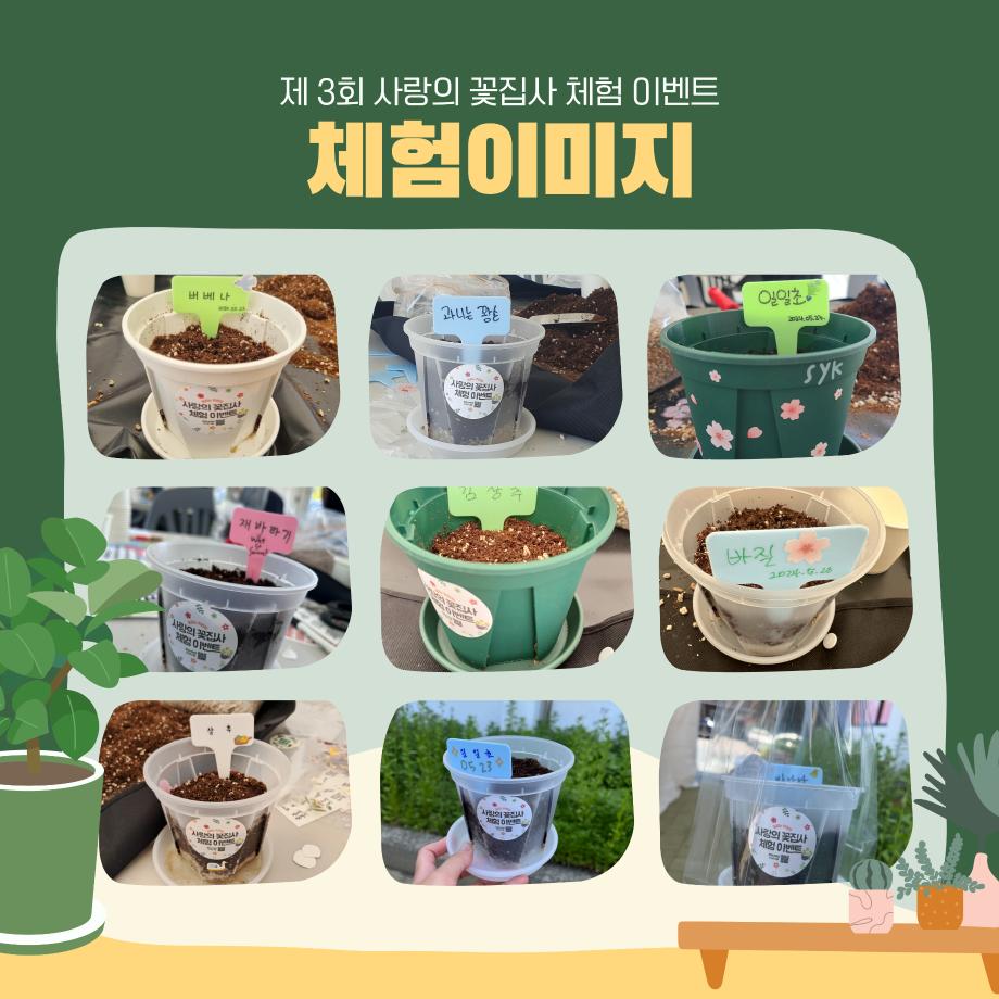 본문 시작 홈으로 포토갤러리 학생위원회 개요 학생위원회 소개 공지사항 활동결과 홈페이지가이드 포토갤러리 페이스북 트위터 프린트 [꽃피는 위원회] 제 3회 사랑의 꽃집사 체험이벤트 학생처 1670 2024-05-23 제 3회 사랑의 꽃집사 체험 이벤트 일시 : 2024.05.23(목) 12:00 ~ 15:00 장소 : 학생회관 앞 광장 참여인원 : 본교 구성원 114명 (꽝 15명, 채소씨앗 30명, 꽃씨앗 67명) 참여한 구성원분들의 식집사 체험 성공을 기원합니다. 목록 이전[맛있는 위원회] 맛그램 틀렸그램 다음 [생각하는 위원회] 대형 현수막 문구 공모전 '준비 시~작' 담당부서 : 장학복지팀 담당자 : - 연락처 : 043-649-1142 최종수정일 : 2024-10-26 만족도조사 만족도 조사 이 페이지에서 제공하는 정보에 대하여 만족하시나요? 매우만족 만족 보통 불만족 매우불만족