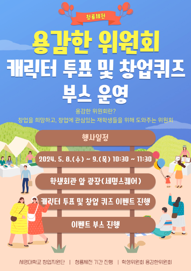 용감한 위원회는 재학생들의 창업활동을 도와주며, 앞으로 더욱 재미있는 이벤트 활동을 진행하도록 노력하겠습니다! 앞으로도 저희 용감한 위원회의 활동과 이벤트에 많은 관심 부탁드리며, 참여해주신 모든 재학생 여러분께 감사 인사드립니다!