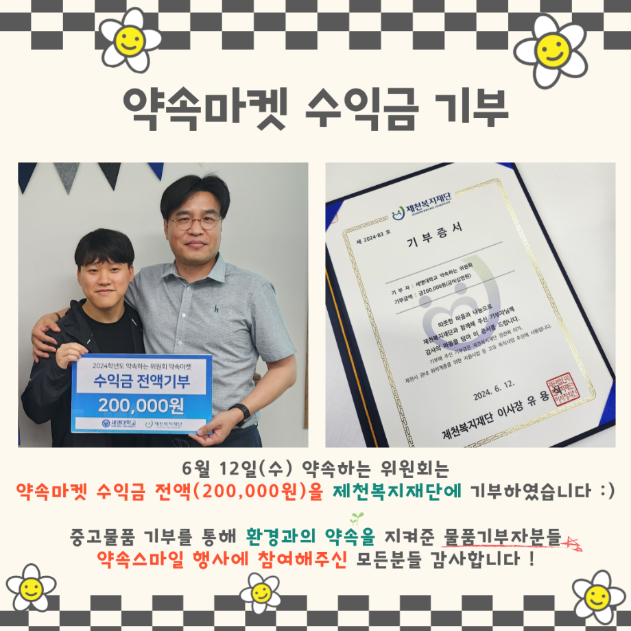 3) 약속 마켓 수익금 200,000원 기부