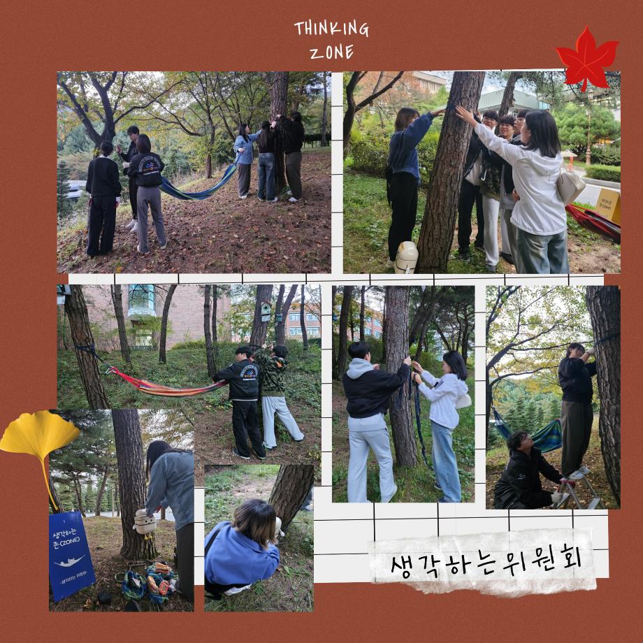 기존 해먹의 노후화로 인하여 새 해먹을 설치하였고, 해먹을 이용하며 소지품 분실이 다수 발생하여 분실물함을 설치하였습니다! 앞으로 해먹을 타려다 분실물을 발견하시면 주인이 찾아갈 수 있도록 분실물함에 넣어주시기 바랍니다:) 만족도 조사에 참여해 주신 336명의 학우분들께 감사의 말씀드리며 잘 반영하여 추후 생각하는 존을 관리해나갈 수 있도록 하겠습니다!