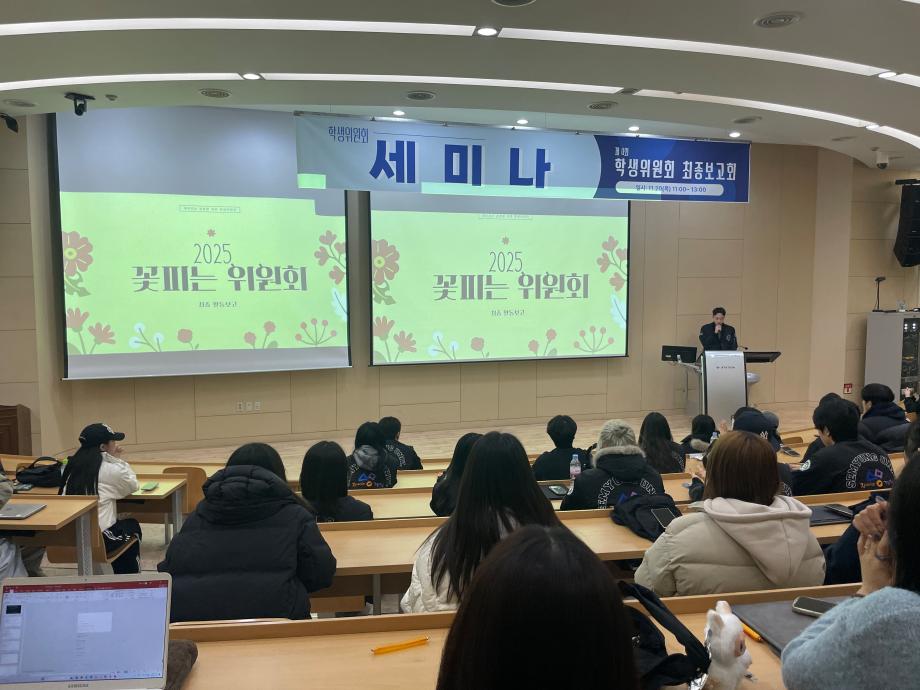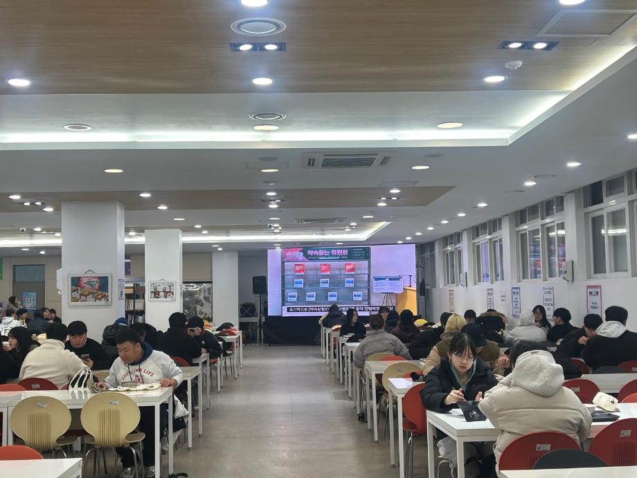 본문 시작 홈으로 포토갤러리 학생위원회 개요 학생위원회 소개 공지사항 활동결과 홈페이지가이드 포토갤러리 페이스북 트위터 프린트 제 4회 학생위원회 최종보고회 학생처 281 2026-02-25 1. 목적: 학생주도의 다양하고 재미있는 경험을 위한 프로그램을 운영하고 실천하는 학생우원회의 2025년 활동 실적보고 2. 기간: 2025.11.20(목)~ 12.19(금) 3. 행사방법: 대면/비대면 4. 행사내용: 세미나(발표회), 활동영상송출, 세미나 영상솔출 등 5. 참여인원: 총 892명 구성원 참여 목록 이전[꽃피는 위원회] 북!마크! 해버렸지뭐야 이전[건강한 위원회]보틀크래 담당부서 : 장학복지팀 담당자 : - 연락처 : 043-649-1142 최종수정일 : 2024-10-26 만족도조사 만족도 조사 이 페이지에서 제공하는 정보에 대하여 만족하시나요? 매우만족 만족 보통 불만족 매우불만족