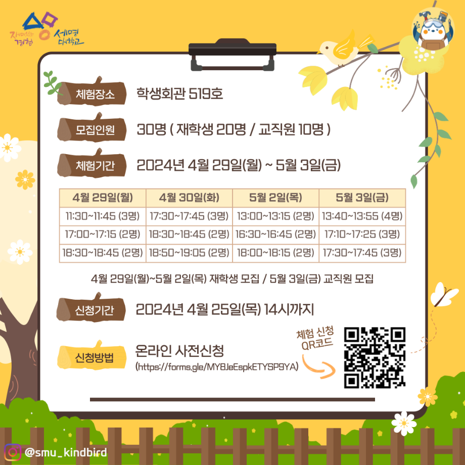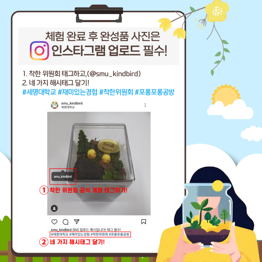 - 온라인 사전신청 → 선발 확인 → 체험 → 완성품 사진 인스타그램 업로드 및 인증