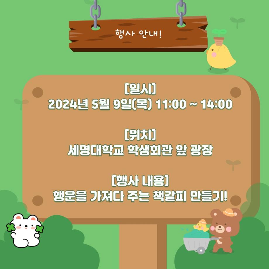 본문 시작 홈으로 공지사항 학생위원회 개요 학생위원회 소개 공지사항 활동결과 홈페이지가이드 프로그램 계획 프로그램 계획 세명대학교 공지사항 프로그램 계획 페이스북 트위터 프린트 [꽃피는 위원회] 행운을 가져다주는 책갈피 만들기 학생처 1771 2024-05-09 행사명 : 행운을 가져다주는 책갈피 만들기 행사일시 : 2024.05.09(목) 11:00시~14시 행사장소 : 학생회관 앞 광장 학생위원회 부스 참여방법 : 꽃피는 위원회 활동 설문조사 완료 인증 후 책갈피 만들기 참여 목록 이전[약속하는 위원회] 약속편지 이전[착한 위원회]제5회 이리오새 페스티벌 담당부서 : 장학복지팀 담당자 : - 연락처 : 043-649-1142 최종수정일 : 2024-10-26 만족도조사 만족도 조사 이 페이지에서 제공하는 정보에 대하여 만족하시나요? 매우만족 만족 보통 불만족 매우불만족