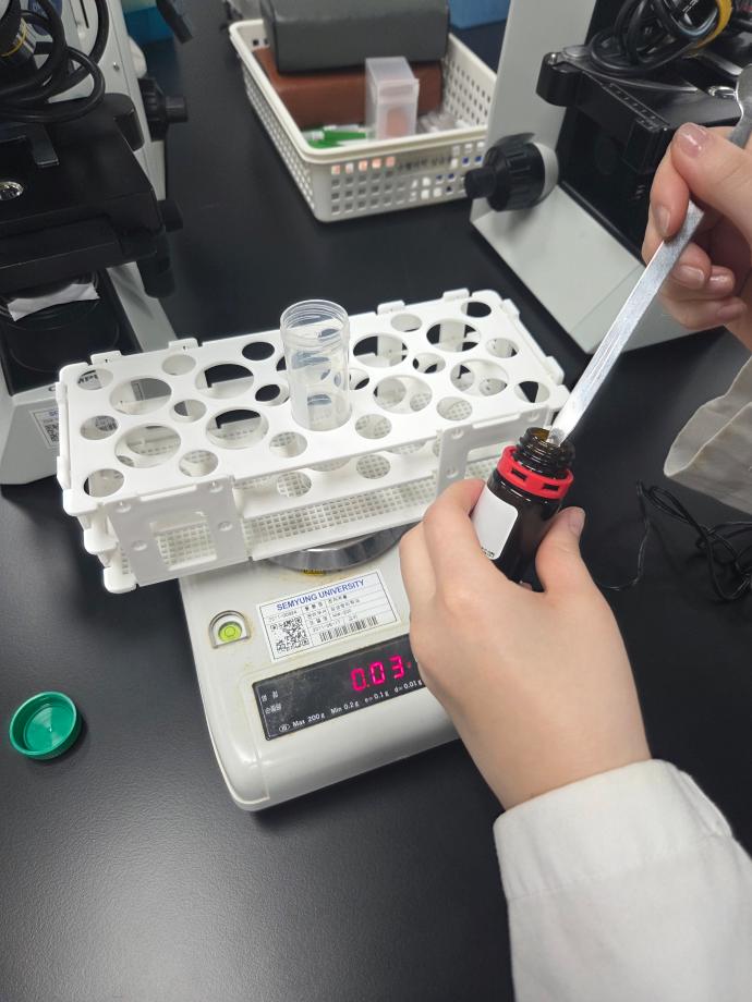 본문 시작 3주차 동아리 활동-초생체 염색 시약 만들기 임상병리학과 12 2026-03-30 3주차 활동으로는 초생체 염색에 쓰이는 New Methylene Blue 시약을 0.5%와 1%로 만들고 시간별로 기록해 그 차이를 비교하는 실험을 진행했습니다. 목록 이전동아리 회식 만족도조사 만족도 조사 이 페이지에서 제공하는 정보에 대하여 만족하시나요? 매우만족 만족 보통 불만족 매우불만족