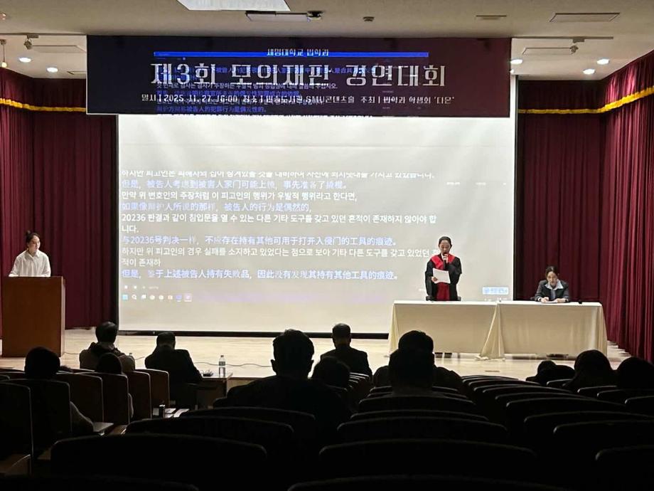 본문 시작 홈으로 커뮤니티 학과안내 교수소개 학과과정 커뮤니티 홈페이지가이드 학과행사 공지사항 취업정보 학과사진첩 학과행사 동아리 학생회 교우소식 모의재판 모의재판 법학학술캠프 법학학술특강 모의재판 페이스북 트위터 프린트 2025학년도 제3회 법학과 모의재판 경연대회 법학과 163 2025-12-17 2025년 11월 27일 민송도서관 1층 콘텐츠홀에서 법학과 모의재판 경연대회 진행하였습니다. 참여하신 모든 분들 고생 많으셨습니다. 목록 이전제2회 모의재판 경영대회 담당부서 : 법학과 담당자 : - 연락처 : 043-649-1764 최종수정일 : 2024-10-26 만족도조사 만족도 조사 이 페이지에서 제공하는 정보에 대하여 만족하시나요? 매우만족 만족 보통 불만족 매우불만족