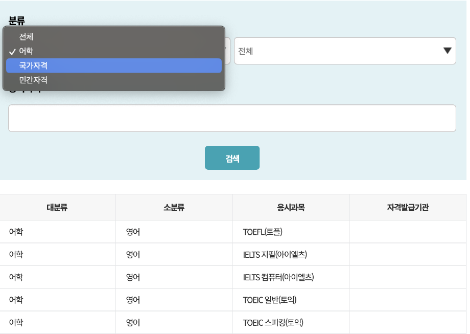 국가기술자격증 항목은 사이트에서 확인할 수 있으며,