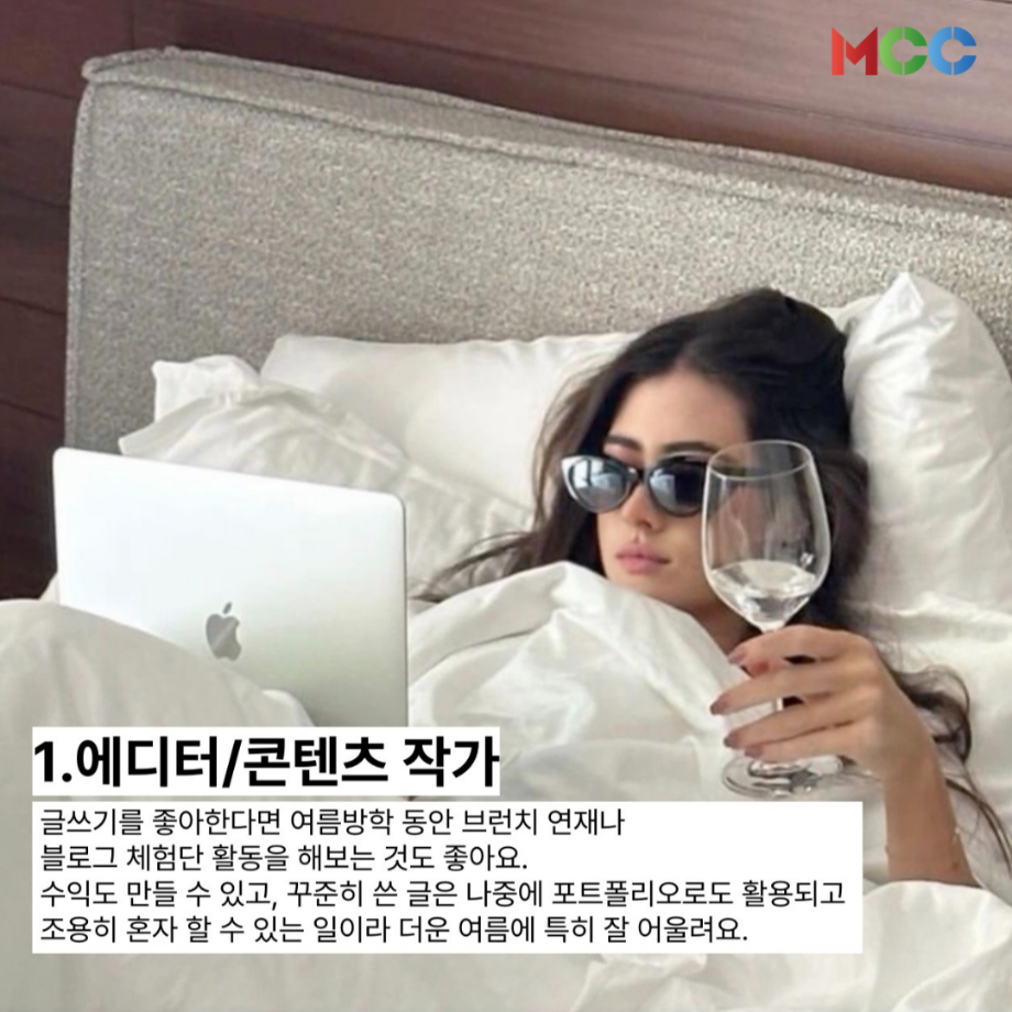 본문 시작 홈으로 MCC News 학과소개 교수소개 학과과정 MCC News MCC SNS 홈페이지가이드 미디어 정보통 학과 및 재학생 교수 및 졸업생 미디어 정보통 미디어 정보통 페이스북 트위터 프린트 ☀️“여름방학에 뭐 하지..?”☀️ 미디어콘텐츠창작학과 1283 2025-06-17 방학에 할 수 있는 사이드잡을 추천해드립니다!😎 1.에디터/콘텐츠 작가 2.썸네일•디자인 외주 3.영상 편집 & 자막 작업 4.온라인 서포터즈 & 대외활동 5.중고거래+스마트스토어 도전 자세한 내용은 @smu_mcc에서! 목록 이전2025 제천시 교육발전특구사업 다음 미콘창 학생들을 위한 자격증 추천 리스트⭐ 담당부서 : 미디어콘텐츠창작학과 담당자 : - 연락처 : 043-649-1741 최종수정일 : 2024-10-26 만족도조사 만족도 조사 이 페이지에서 제공하는 정보에 대하여 만족하시나요? 매우만족 만족 보통 불만족 매우불만족