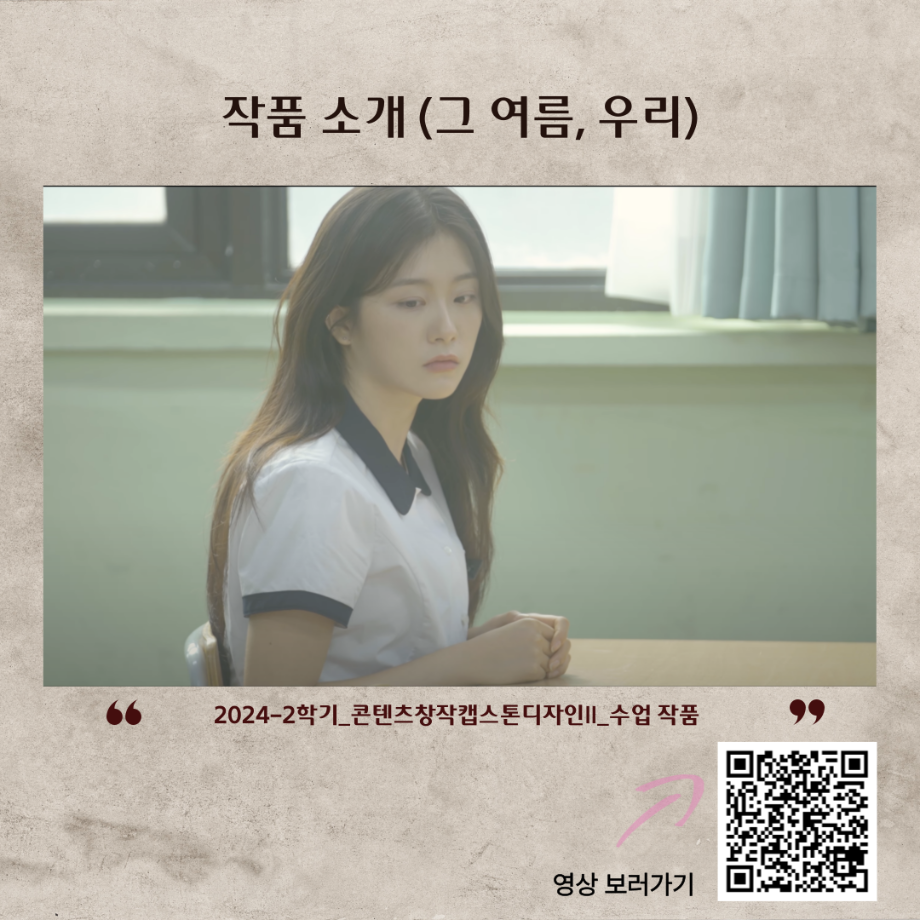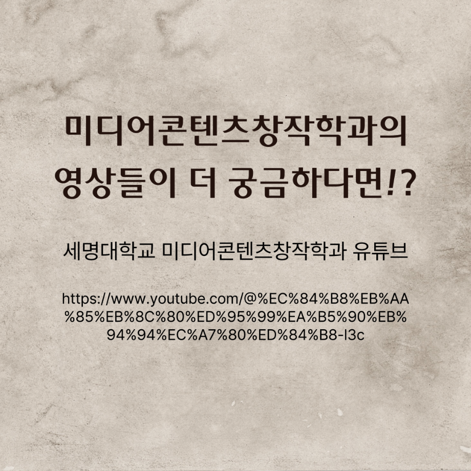 본문 시작 홈으로 MCC News 학과소개 교수소개 학과과정 MCC News MCC SNS 홈페이지가이드 미디어 정보통 학과 및 재학생 교수 및 졸업생 미디어 정보통 미디어 정보통 페이스북 트위터 프린트 🎬 미디어콘텐츠창작학과 | 영상 전공 미디어콘텐츠창작학과 1157 2025-07-29 미디어콘텐츠창작학과의 영상전공을 소개합니다. 영상 전공은 기획부터 촬영, 편집, 연출까지 콘텐츠 제작의 전 과정을 배우는 실무 중심 전공입니다. 기획부터 촬영, 편집까지 학생들이 모두 하나하나 만든 작품들입니다 📽️ 직접 만든 단편영화들 ✨ 그 여름, 우리 ✨ B하숙과 러브레터 ✨ 시소 목록 이전2025 시청자미디어대상 방송영상공모전 다음 경험이 실력이 되는 세명대학교 담당부서 : 미디어콘텐츠창작학과 담당자 : - 연락처 : 043-649-1741 최종수정일 : 2024-10-26 만족도조사 만족도 조사 이 페이지에서 제공하는 정보에 대하여 만족하시나요? 매우만족 만족 보통 불만족 매우불만족
