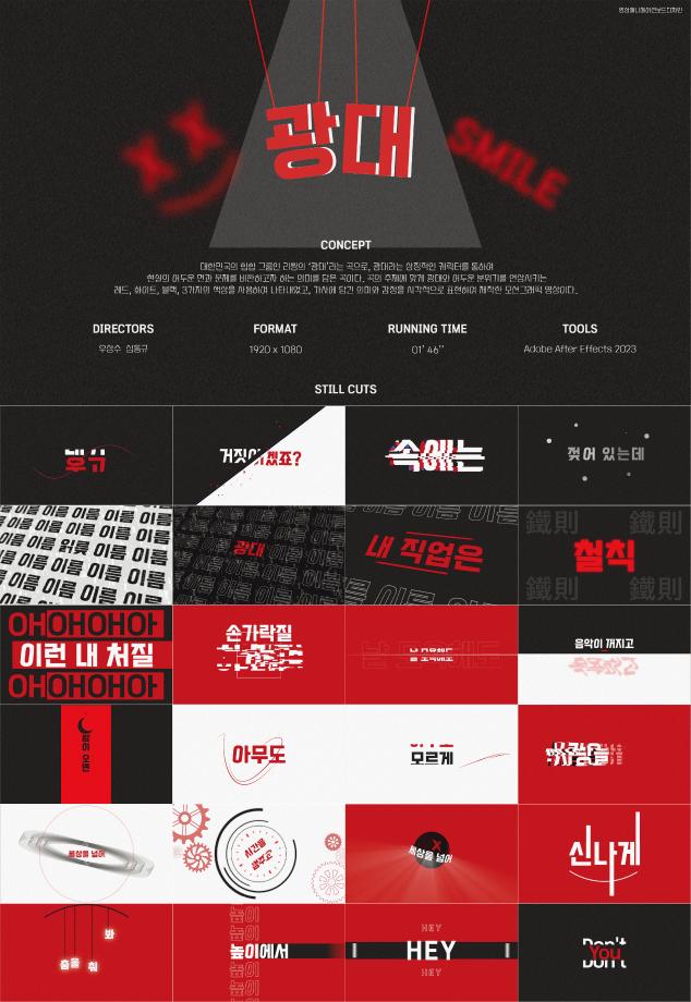본문 시작 홈으로 학과자랑 학과소개 학과과정 시영소식 입학/취업 AI 학과자랑 SNS소통 홈페이지가이드 졸업전시회 학과자랑 갤러리 공모전 동아리 졸업전시회 2023 졸업작품 2022 졸업작품 2023 졸업작품 2024 졸업전시 2025 졸업전시 2026 졸업전시 2023 졸업작품 페이스북 트위터 프린트 2023년도 시각영상디자인학과 졸업작품-영상 부문(3) 시각영상디자인학과 1831 2023-12-04 목록 이전2023년도 시각영상디자인학과 졸업작품-영상 부문(2) 다음 2023년도 시각영상디자인학과 졸업작품-영상 부문(4) 만족도조사 만족도 조사 이 페이지에서 제공하는 정보에 대하여 만족하시나요? 매우만족 만족 보통 불만족 매우불만족