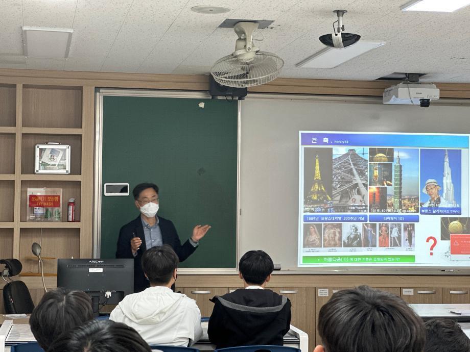 본문 시작 홈으로 커뮤니티 학과소개 교수소개 교육과정 학과 행사 및 활동 커뮤니티 홈페이지가이드 열린정보 학과일정 학과공지 채용정보 및 자료 열린정보 포토갤러리 먹거리, 즐길거리 포토갤러리 사진 사진 영상 사진 페이스북 트위터 프린트 사진 영상 ‘제천고등학교 자연과학 아카데미’ 특강 건축학과 1359 2023-05-22 제천고등학교에서 매년 시행하고 있는 ‘자연과학 아카데미’에 이완건 교수님이 특강을 진행하였습니다. ‘왜 교실은 네모 인가’라는 주제로 진행하였으며 본교 IT엔지니어링대학 학부(과) 교수님들이 6월달까지 매주 1회씩 특강을 시행할 예정 입니다.~~^^ 목록 다음 교육부장관 표창장 수여 이전"뮤지엄 산" 현장답사 만족도조사 만족도 조사 이 페이지에서 제공하는 정보에 대하여 만족하시나요? 매우만족 만족 보통 불만족 매우불만족