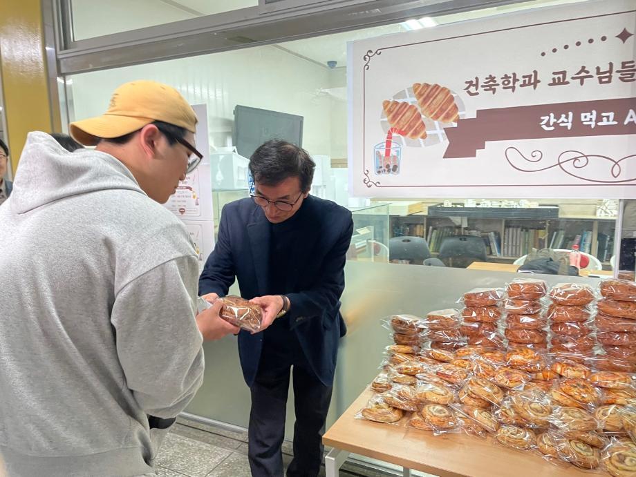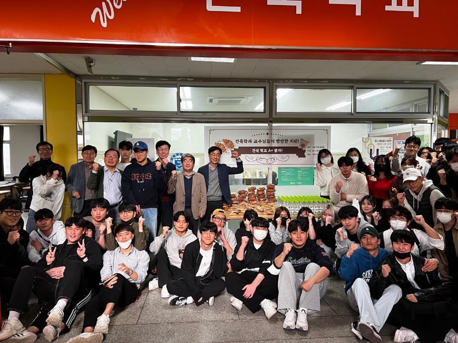 본문 시작 홈으로 커뮤니티 학과소개 교수소개 교육과정 학과 행사 및 활동 커뮤니티 홈페이지가이드 열린정보 학과일정 학과공지 채용정보 및 자료 열린정보 포토갤러리 먹거리, 즐길거리 포토갤러리 사진 사진 영상 사진 페이스북 트위터 프린트 사진 영상 힘내라~ 건축학과~!! 건축학과 1344 2023-04-19 세명대학교 건축학과(학과장 이태구)는 2023학년도 1학기 중간고사 기간에 학생들을 응원하기 위해 “건축학과 교수들 의 빵빵한 지원!” 행사를 진행하였다. 건축학과 교수님들은 학생들에게 빵과 음료수를 전달하면서 중간고사를 잘 준비할 수 있도록 응원의 메시지를 전달하였 고, 학과장 이태구 교수는 “세명대학교 건축학과 학생들의 학교생활 만족도 향상을 위해 학과 교수님들은 항상 고민하고 있다.”고 말했다. 목록 다음 TODAY IS 비타민 DAY !!! “2차 과일 나눔 이벤트” 이전세명대학교 상징조형물 제작 만족도조사 만족도 조사 이 페이지에서 제공하는 정보에 대하여 만족하시나요? 매우만족 만족 보통 불만족 매우불만족