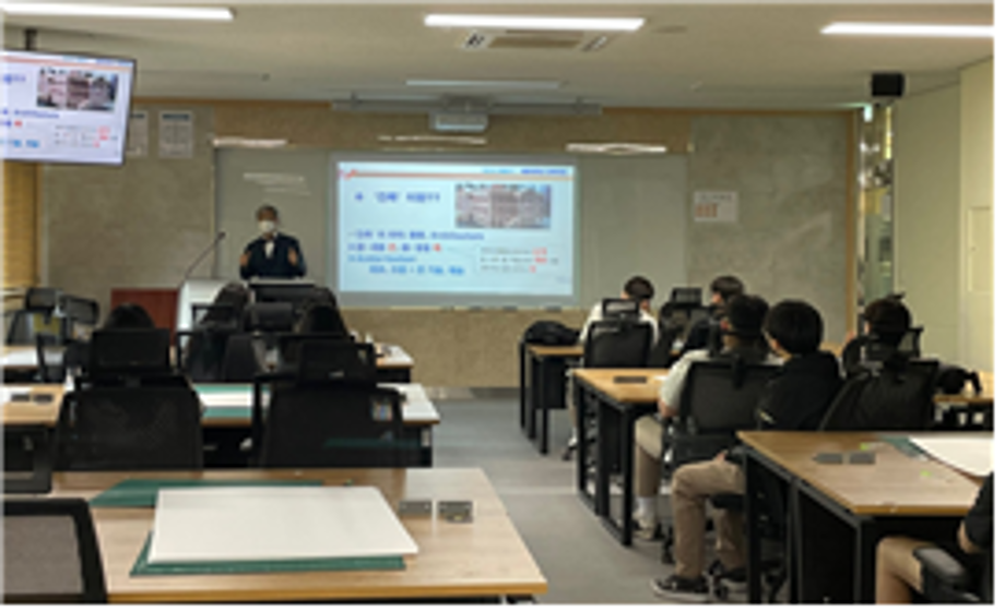 본교 입학관리본부가 주관한 ‘전공체험프로그램’의 일환으로 우리학과에서는 제천제일고등학교학생을 대상으로 2022 년 5월6일 건축체험행사를 치렀다. 건축전공에 흥미를 가진 제일고 12명의 학생을 초청하여 Archi-608 첨단강의실에서 이루어진 이번 행사에서는 건축에 대한 소개와 이론 강의에 이어, 건축가 LeCorbusier의 Domino House의 모형을 축척 1:100 규모로 직접 만들어보는 순서로 진행되었다. 이를 통해 고교생들에게 건축분야의 이해와 진로에 대한 꿈을 심어주고, 우리학과를 자세히 알릴 수 있는 유익한 기회였 음에 의심의 여지가 없다.