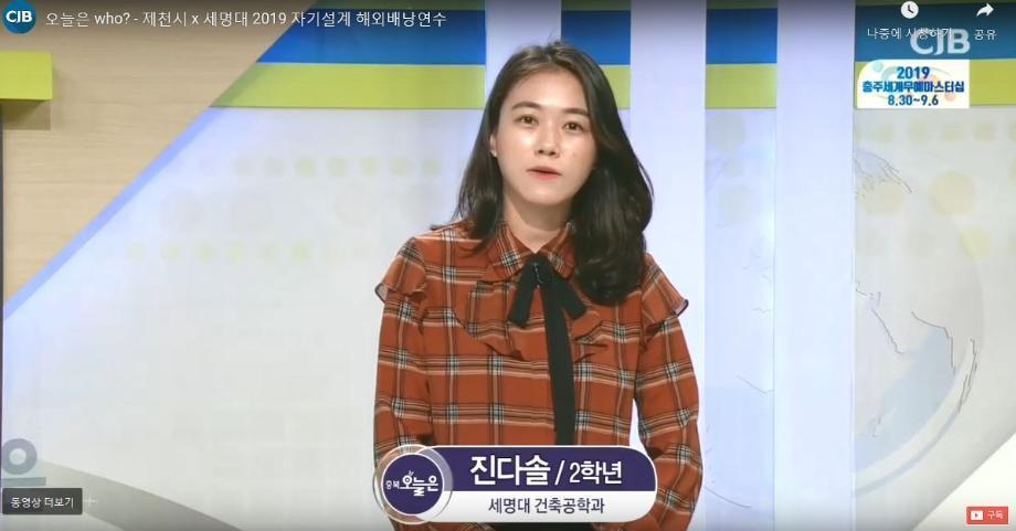 본문 시작 홈으로 커뮤니티 학과소개 교수소개 교육과정 학과 행사 및 활동 커뮤니티 홈페이지가이드 열린정보 학과일정 학과공지 채용정보 및 자료 열린정보 포토갤러리 먹거리, 즐길거리 포토갤러리 사진 사진 영상 사진 페이스북 트위터 프린트 사진 영상 CJB 청주방송 출연 건축학과 1324 2019-09-05 CJB 청주방송 오늘은 who ? (2019년 9월 5일) 제천시 X 세명대 2019 제천시 해외배낭연수 프로그램 세명대학교 건축공학과 2학년 진다솔 학생 출연 CJB 청주방송 다시보기 링크 https://www.cjb.co.kr/home/sub.php?menukey=322&mod=view&no=9019&scode=99999999 목록 다음 2019학년도 Archi-608 개소식 이전제2회 국제건축디자인워크숍(IADW) 및 태국 건축현장 체험 만족도조사 만족도 조사 이 페이지에서 제공하는 정보에 대하여 만족하시나요? 매우만족 만족 보통 불만족 매우불만족