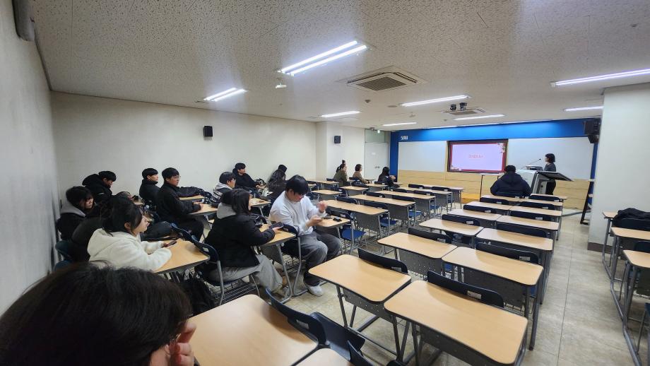 본문 시작 홈으로 학과 커뮤니티 학부소개 교수소개 교육목표 입학안내 학과 커뮤니티 대학원 커뮤니티 홈페이지가이드 학과 갤러리 학과소식 학사일정 학과 갤러리 학과 갤러리 페이스북 트위터 프린트 2025학년도 2학기 종강총회 상담심리학과 425 2025-12-15 안녕하십니까 세명대학교 상담심리학과입니다! 지난 12월 2일 2025 2학기 종강총회를 진행하였습니다. 바쁜 일정 속에서도 참석해 주신 교수님들과 학우 여러분께 감사드리며, 이번 종강총회를 통해 한 학기의 마무리를 함께 할 수 있어 더욱 뜻깊은 시간이었습니다. 방학 즐겁게 보내시고 내년에 건강한 모습으로 만나길 바랍니다 :) 목록 이전12월 학사일정 다음 2025학년도 2학기 기말고사 만족도조사 만족도 조사 이 페이지에서 제공하는 정보에 대하여 만족하시나요? 매우만족 만족 보통 불만족 매우불만족