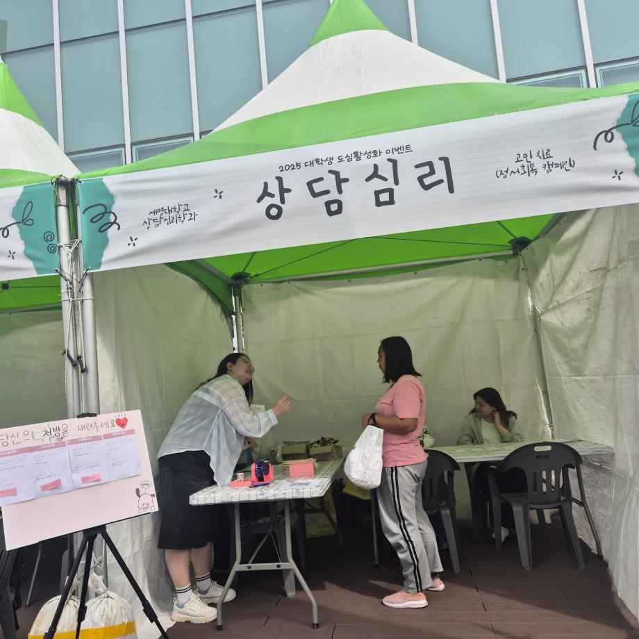 본문 시작 홈으로 학과 커뮤니티 학부소개 교수소개 교육목표 입학안내 학과 커뮤니티 대학원 커뮤니티 홈페이지가이드 학과 갤러리 학과소식 학사일정 학과 갤러리 학과 갤러리 페이스북 트위터 프린트 2025 대학생 도심활성화 이벤트 상담심리학과 542 2025-10-14 안녕하세요 세명대학교 상담심리학과입니다! 9월 30일에 진행된 2025 대학생 도심활성화 행사에서 상담심리학과 학생들이 '마음약국'이라는 부스로 정서회복 캠페인을 진행했습니다. ( ·•︡_•︠)ʕ𐭩 다양한 사람들의 고민을 듣고 공감과 위로를 전하는 의미 있는 시간이었습니다. 앞으로 이런 기회가 더 많아지길 바라며, 큰 고민 없이 행복한 날들이 이어지길 바랍니다 :) 목록 이전GRIT 동아리 봉사활동 다음 2025학년도 Step Up! SMU창업캠프 및 경진대회 만족도조사 만족도 조사 이 페이지에서 제공하는 정보에 대하여 만족하시나요? 매우만족 만족 보통 불만족 매우불만족