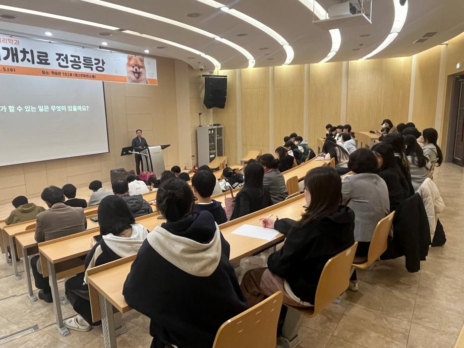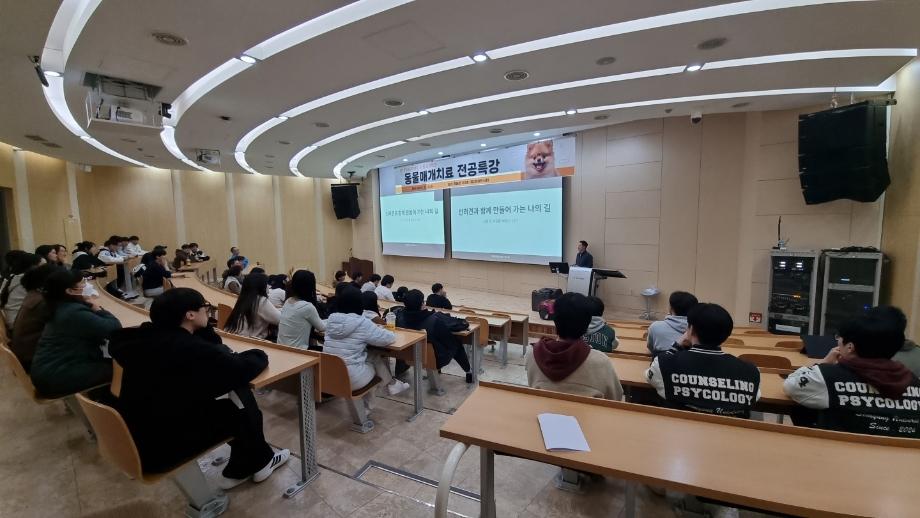 본문 시작 홈으로 학과 커뮤니티 학부소개 교수소개 교육목표 입학안내 학과 커뮤니티 대학원 커뮤니티 홈페이지가이드 학과 갤러리 학과소식 학사일정 학과 갤러리 학과 갤러리 페이스북 트위터 프린트 동물매개치료 전공특강 상담심리학과 435 2025-11-10 안녕하세요 세명대학교 상담심리학과입니다! 지난 5일 학술관 컨퍼런스홀에서 동물매개치료 전공특강이 진행되었습니다! 동물매개치료 관련 이론을 배우며 전공 능력을 함양할 수 있는 뜻깊은 시간이었습니다 :) 목록 다음 2025학년도 Step Up! SMU창업캠프 및 경진대회 다음 나와 어울리는 심리이론은? 만족도조사 만족도 조사 이 페이지에서 제공하는 정보에 대하여 만족하시나요? 매우만족 만족 보통 불만족 매우불만족