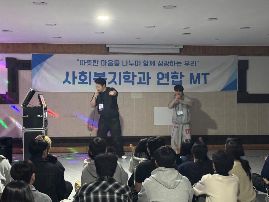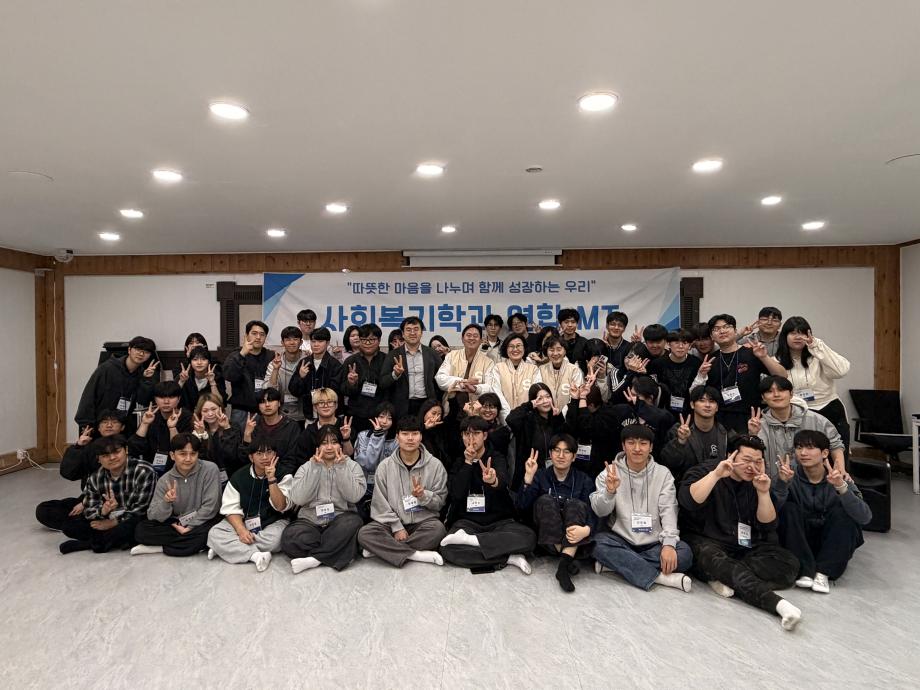 본문 시작 홈으로 커뮤니티 학과소개 교수소개 교육과정 현장실습 및 취업정보 커뮤니티 홈페이지가이드 포토갤러리 학과공지 학사일정 학생회 동아리 학생 소통 광장 포토갤러리 전공자료실 서식자료실 포토갤러리 페이스북 트위터 프린트 [사회복지학과] 2026학년도 연합 MT 사회복지학과 25 2026-04-07 지난 4/2~4/3 사회복지학과 연합 MT를 원주 힐링파크로 다녀왔습니다. 목록 이전[사회복지학과] 2026학년도 신입생 환영회 만족도조사 만족도 조사 이 페이지에서 제공하는 정보에 대하여 만족하시나요? 매우만족 만족 보통 불만족 매우불만족