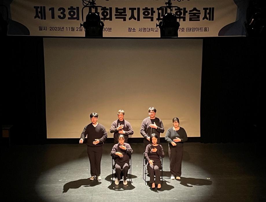 이번 2023년 사회복지학과 학술제에서는 실습 발표회 및 현장 실습 영상 공모전 시상식, 동아리 발표회를 진행했으며, '음표'의 연주회와 '그린나래'의 수화공연, 'CMHV'의 소시오연극 등 학과 동아리에서 다양한 공연을 진행하였습니다😊