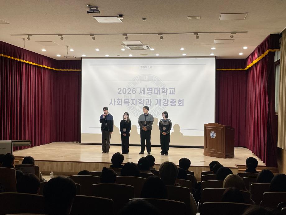 본문 시작 홈으로 커뮤니티 학과소개 교수소개 교육과정 현장실습 및 취업정보 커뮤니티 홈페이지가이드 포토갤러리 학과공지 학사일정 학생회 동아리 학생 소통 광장 포토갤러리 전공자료실 서식자료실 포토갤러리 페이스북 트위터 프린트 [사회복지학과] 2026학년도 개강총회 사회복지학과 84 2026-03-30 일시: 2026. 3. 18. 17:00 장소: 세명대학교 민송도서관 시청각실 지난 3월 18일, 2026학년도 새학기를 맞이하여 사회복지학과 개강총회가 진행되었습니다. 목록 이전[사회과학대학] 제 9회 사회과학대학 토론대회 수상 다음 [사회복지학과] 2026학년도 신입생 환영회 만족도조사 만족도 조사 이 페이지에서 제공하는 정보에 대하여 만족하시나요? 매우만족 만족 보통 불만족 매우불만족